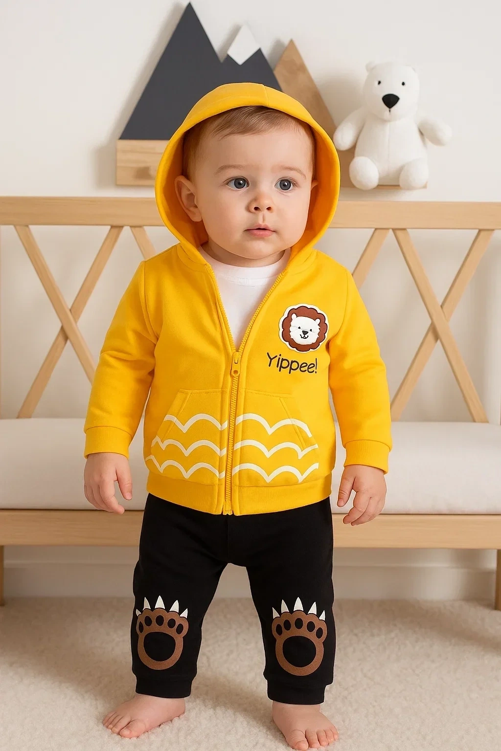 Aslan Desenli 3'lü Erkek Bebek Takımı