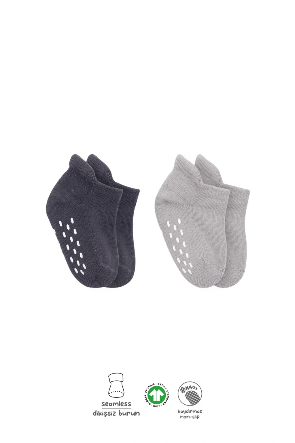• Bistyle 2'li Altı Havlu Sneakers Kaymaz Çorap 20501 Gri-antrasit
