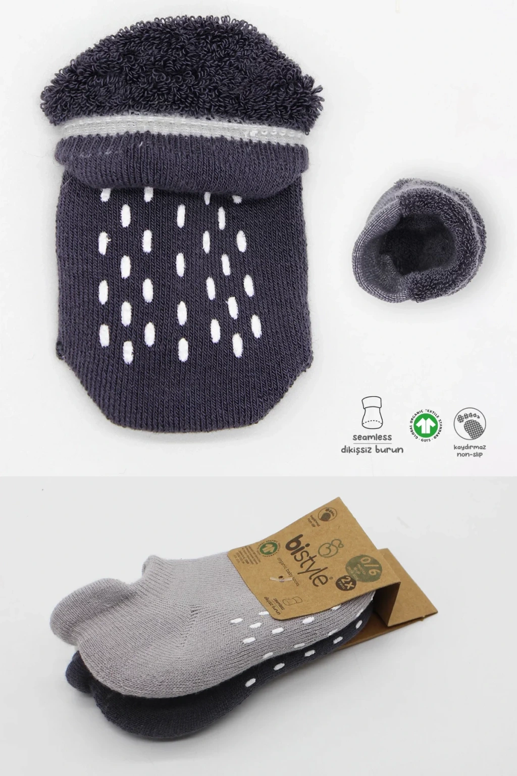 Bistyle 2'li Altı Havlu Sneakers Kaymaz Çorap 20501 Gri-antrasit
