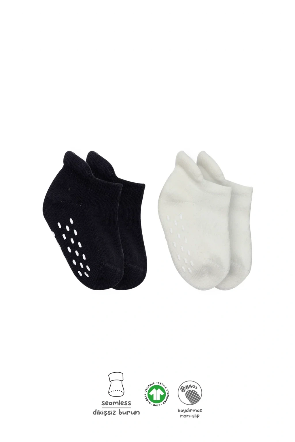 • Bistyle 2'li Altı Havlu Sneakers Kaymaz Çorap 20501 Siyah Ekru