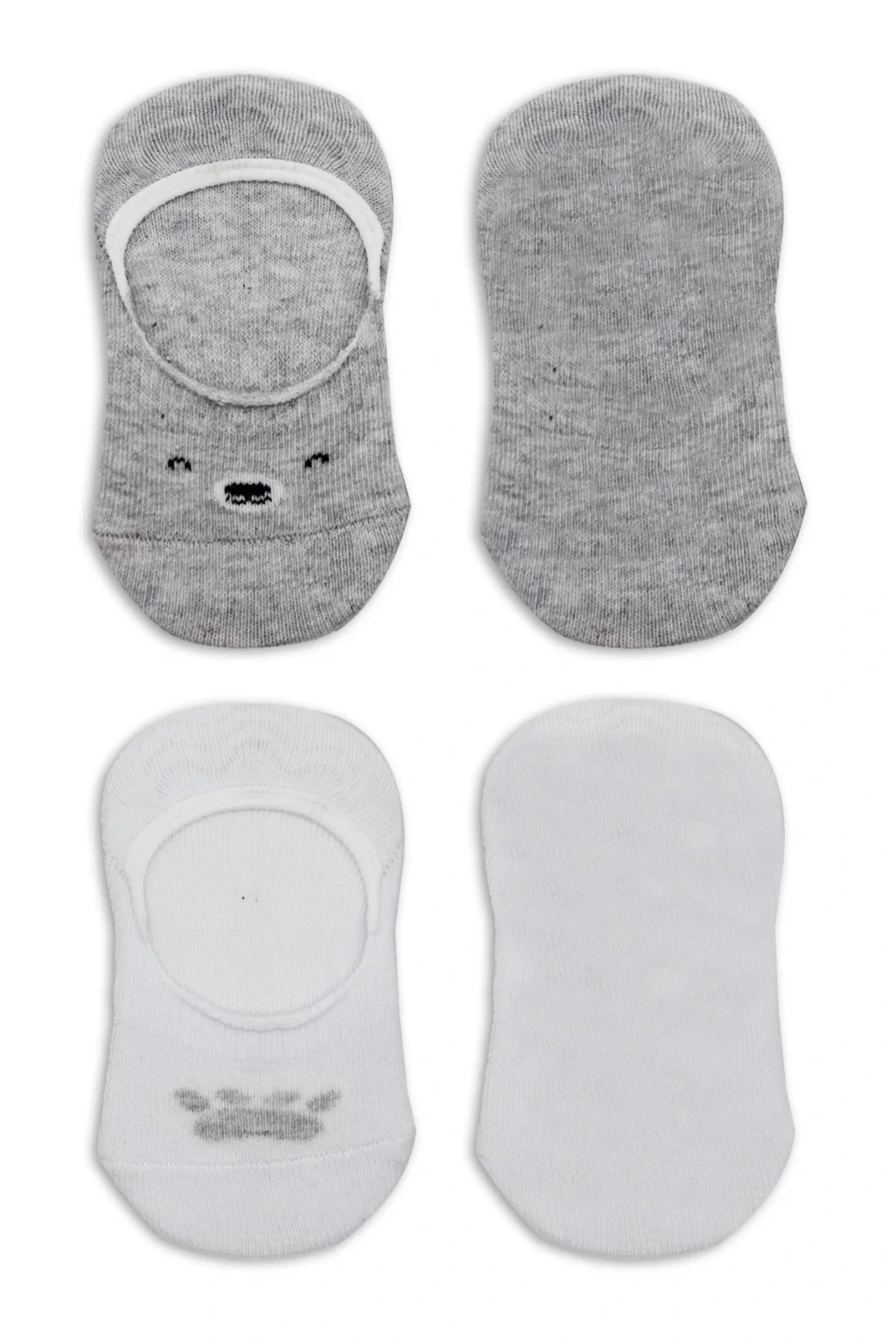 • Bistyle 2'li Babet Cute Face Penye Çorap 30103 Gri Beyaz