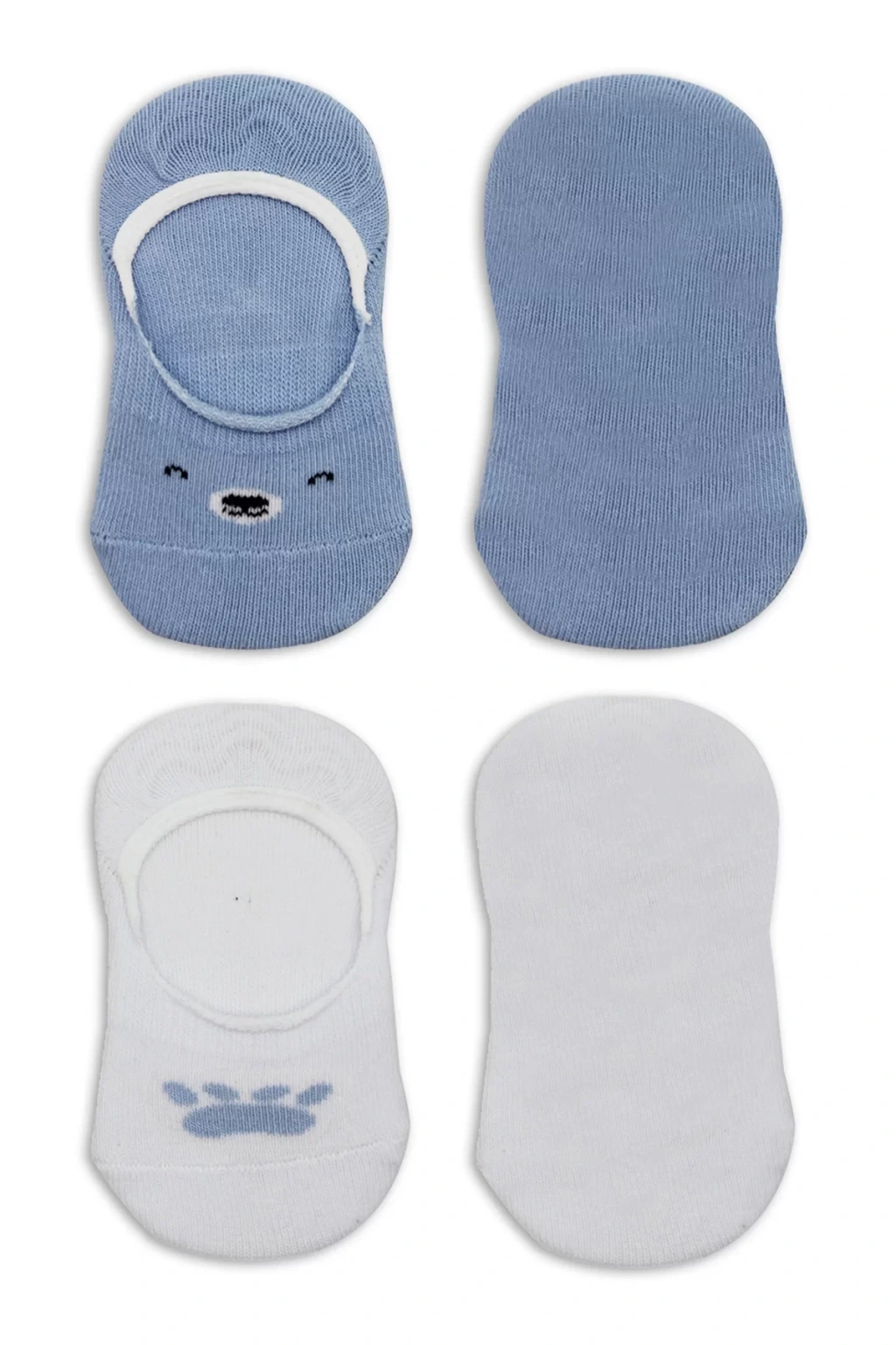 • Bistyle 2'li Babet Cute Face Penye Çorap 30103 Mavi-beyaz
