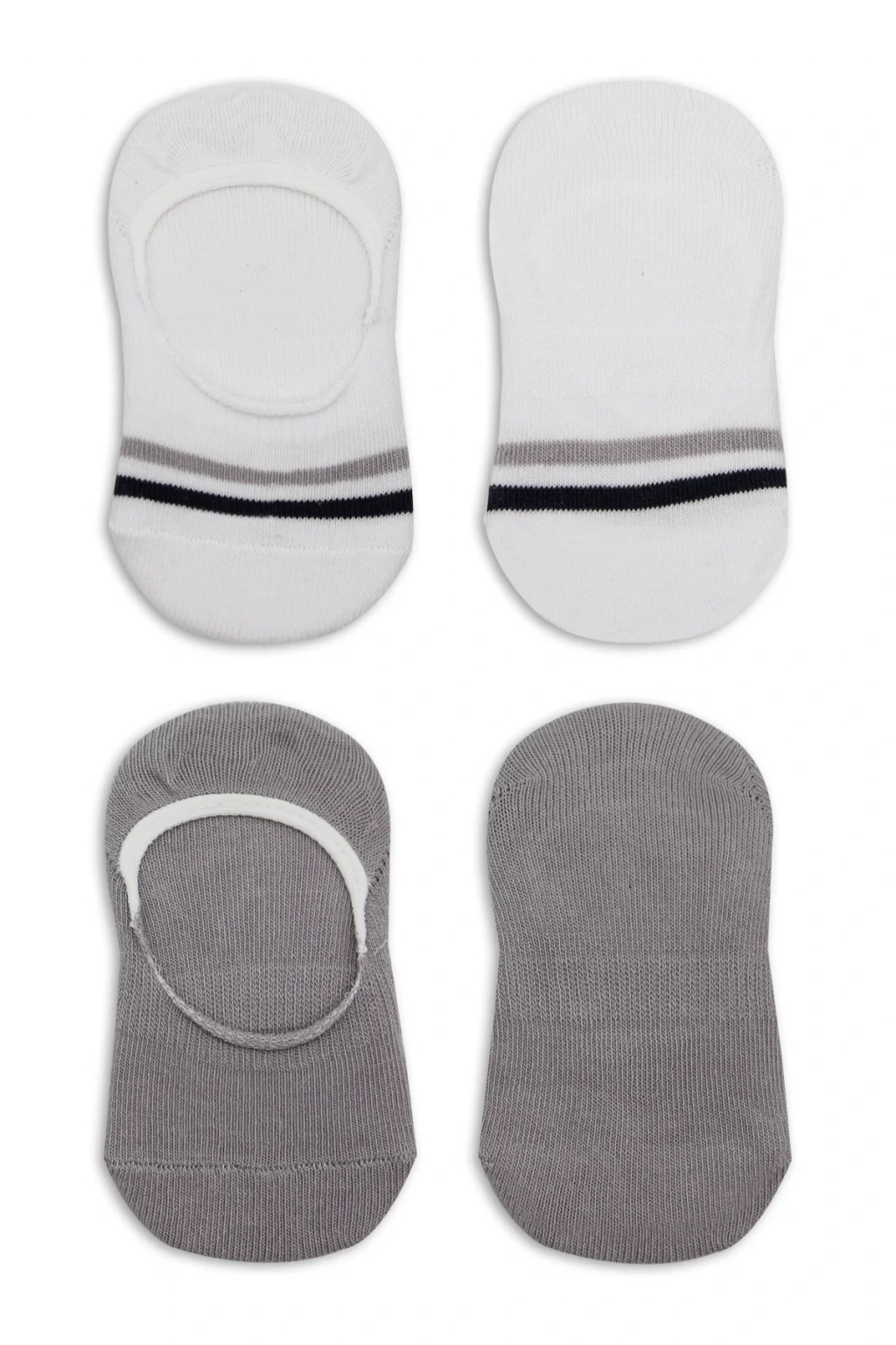 Bistyle 2'li Penye Babet Silikon Çemberli Çorap 30102 Gri Beyaz
