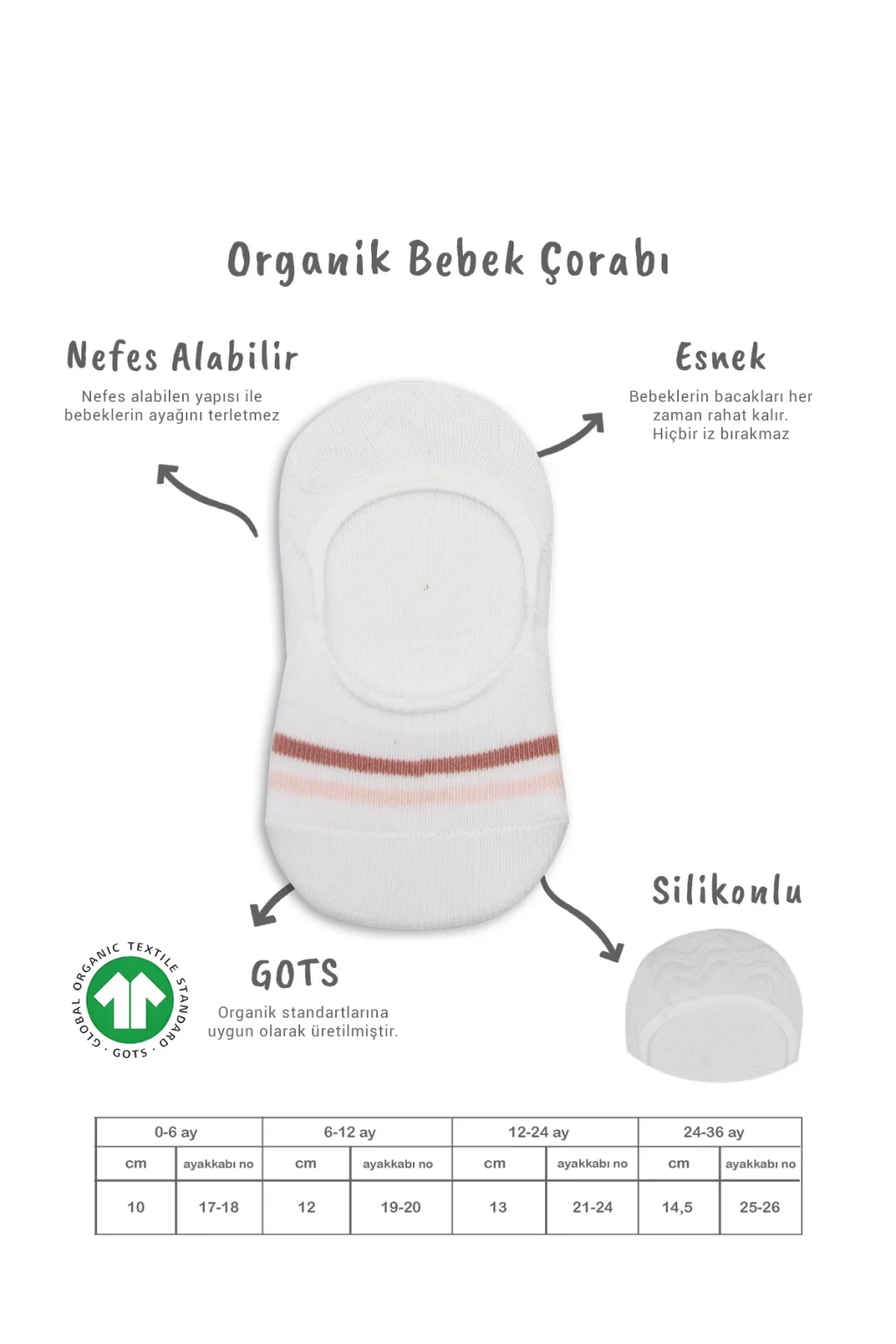 • Bistyle 2'li Penye Babet Silikon Çemberli Çorap 30102 Pudra Beyaz