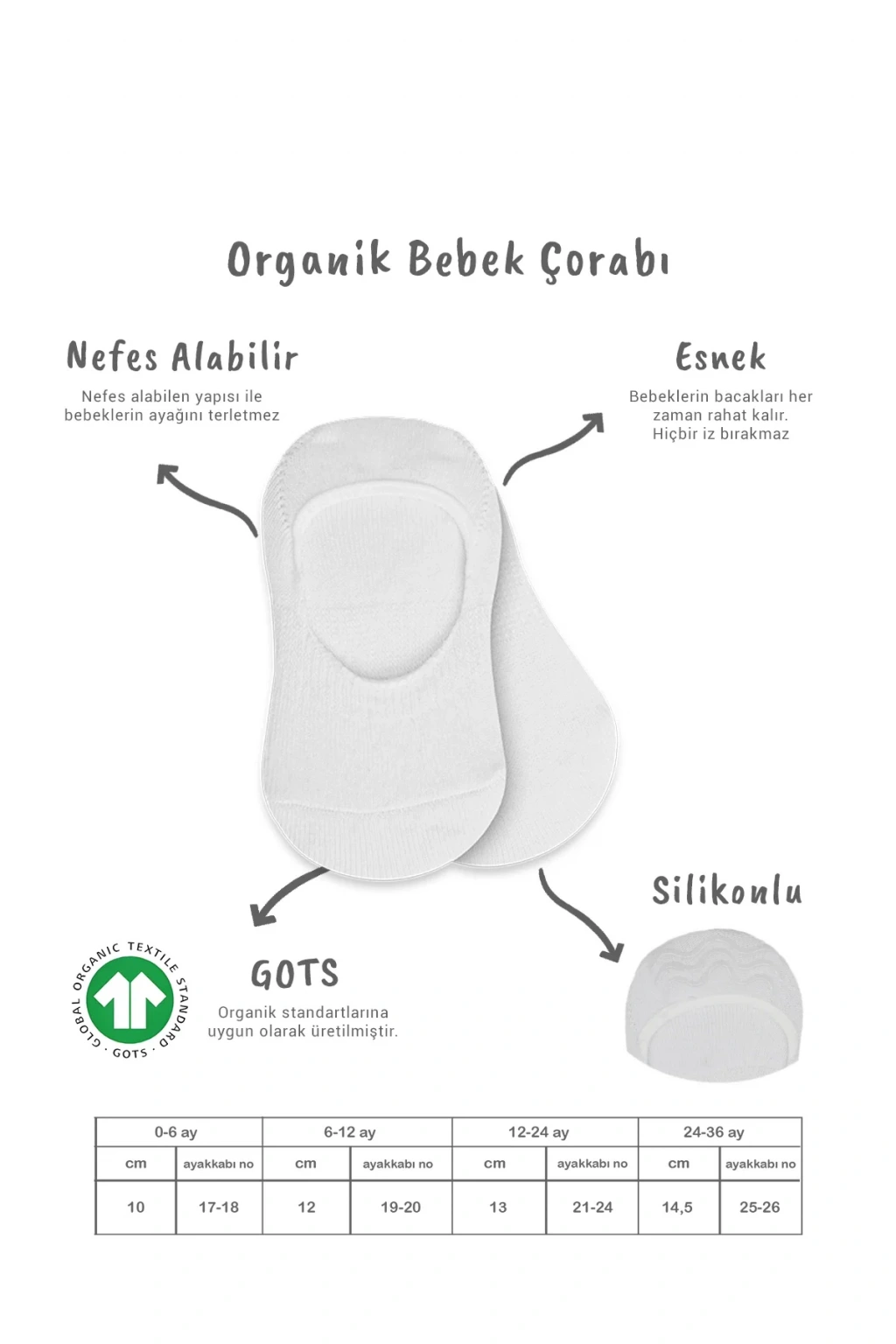 • Bistyle 2'li Penye Babet Silikonlu Basic Çorap 30104 Gri Beyaz