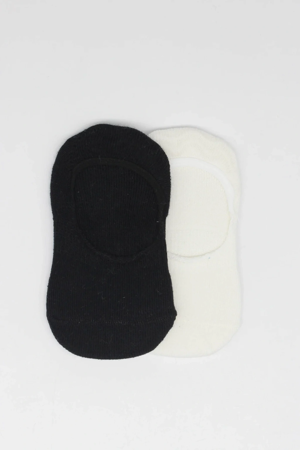 • Bistyle 2'li Penye Babet Silikonlu Basic Çorap 30104 Siyah Ekru