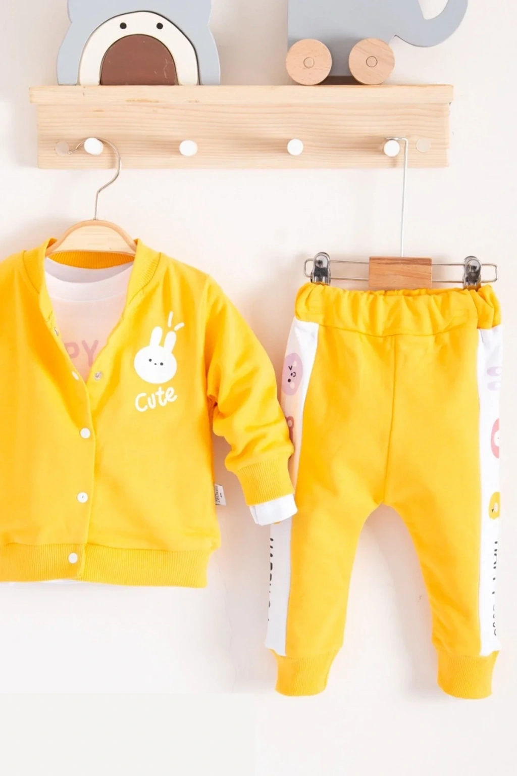 Cute Funny Desenli Kapişonlu Pamuklu 3'lü Kız Bebek Takımı