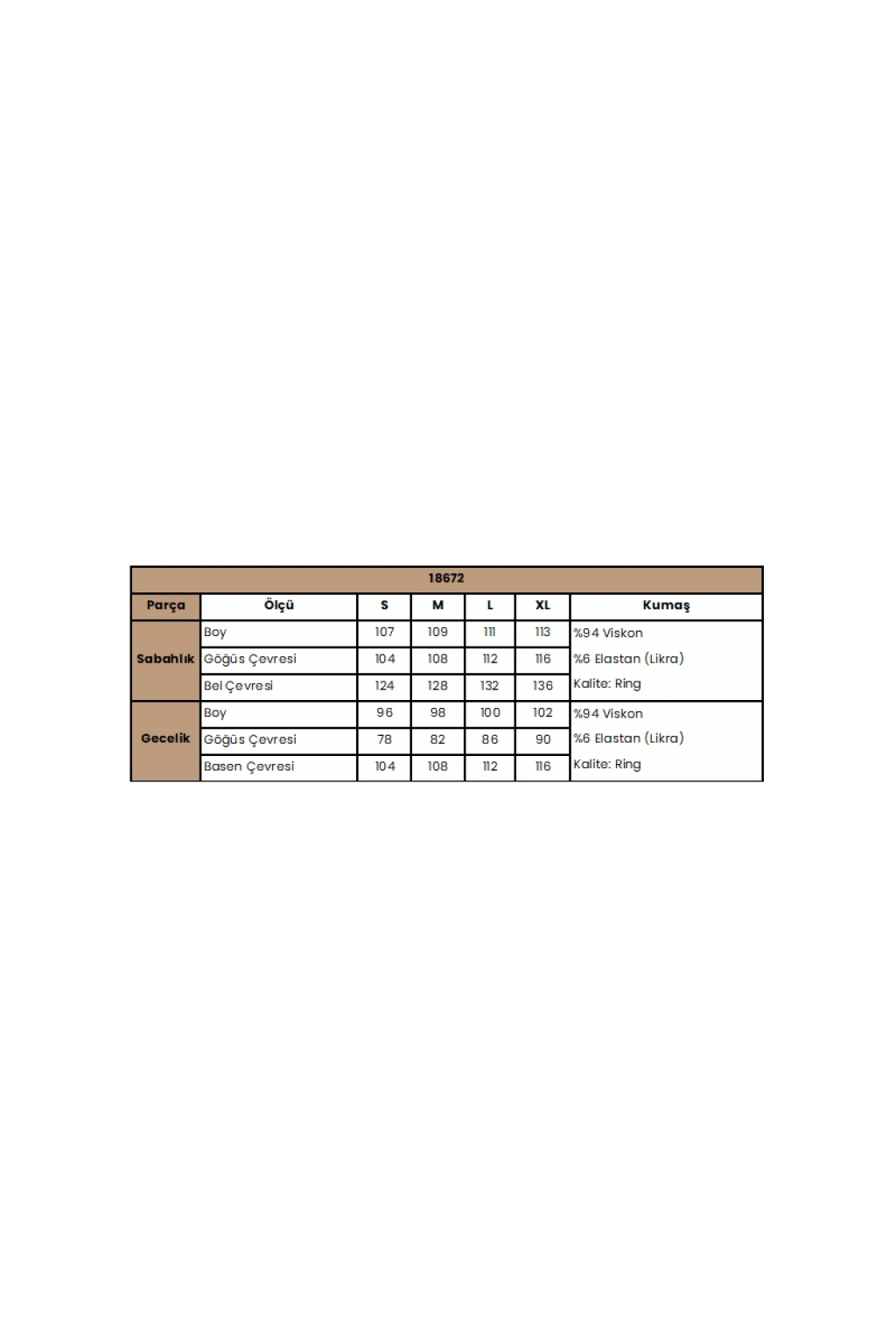 Gecelik: Gri renklidir, derin V yakalıdır, yakası, göğsü ve göğüs altı dantellidir, emzirme için askılardan açılır durumdadır, ayarlanabilir lastik askılıdır, örme kumaştır.