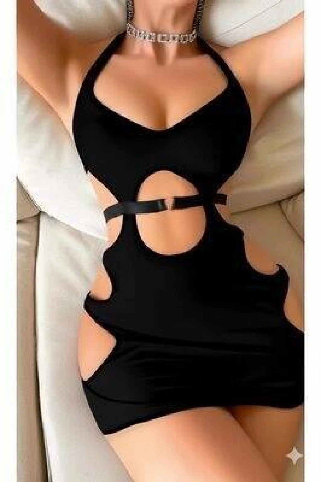 Göğüs ve bel bölgesinde cesur kesim detayları