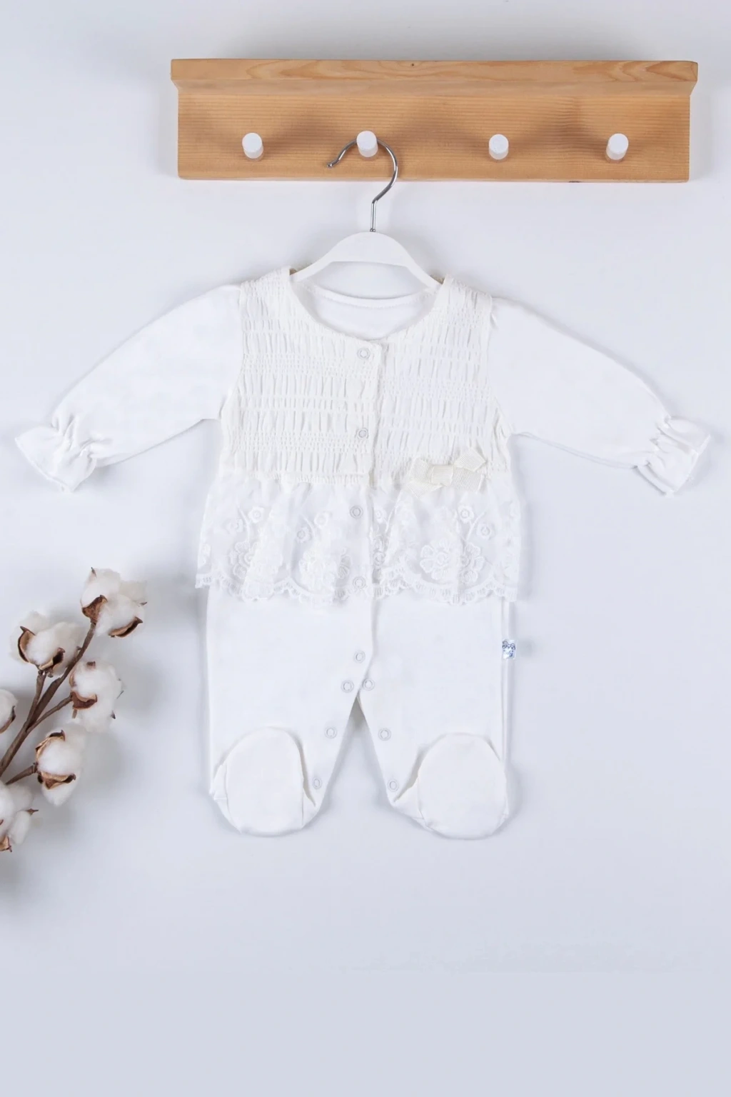 Gofralı Fransız Güpürlü % 100 Pamuk Kız Bebek Tulumu