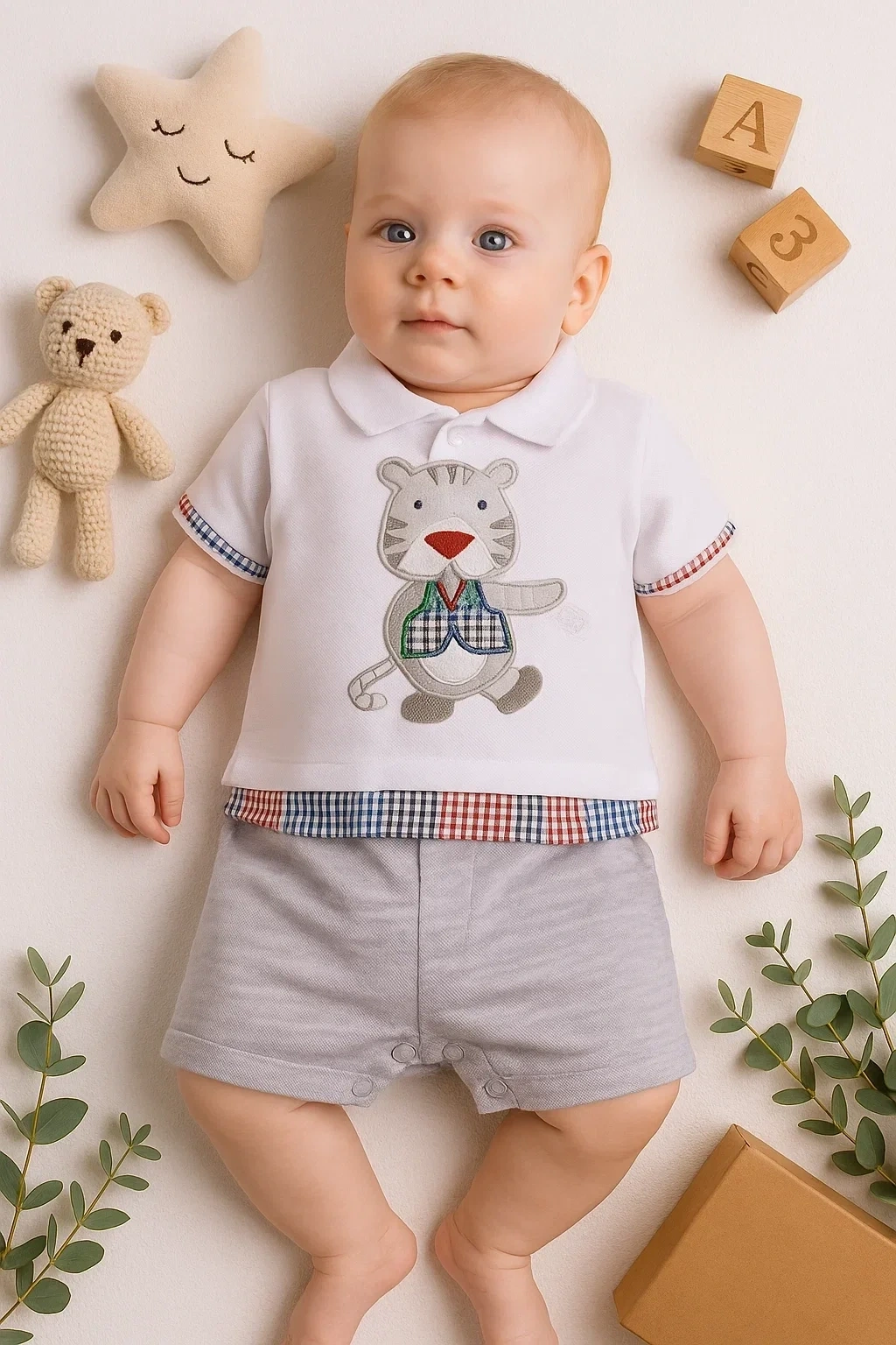 Gömlek Desenli Erkek Bebek Tulumu