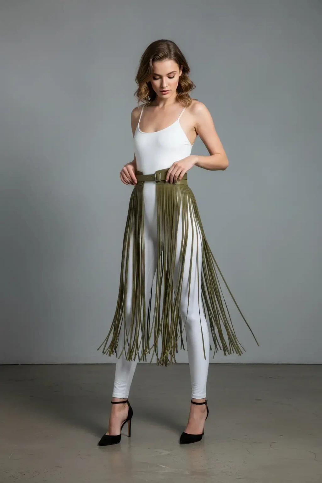 Haki Etek Uzun Püsküllü Yüksek Bel Etek - Brf1003