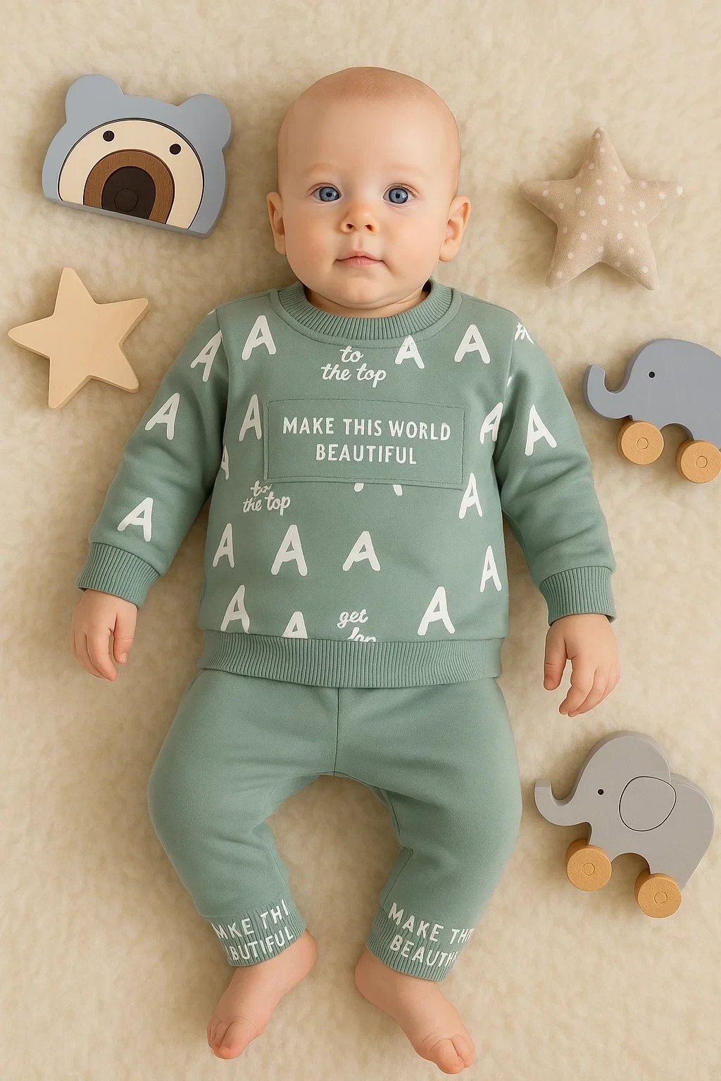Harf Baskılı 2'li % 100 Pamuk Erkek Bebek Takımı.