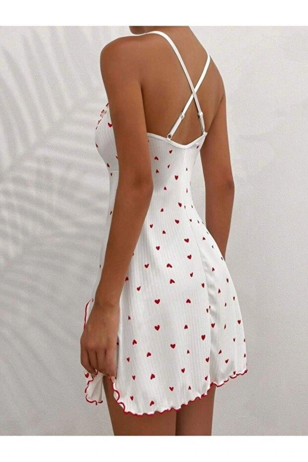 • Kadın Beyaz Kırmızı Kalp Desenli Askılı Elbise 5066