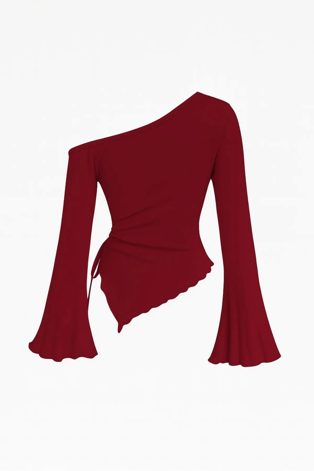 • İster klasik ister modern bir tarzınız olsun, Kadın Bordo Asimetrik Yaka Drapeli Yan Bağlamalı Bluz, gardırobunuzun en özel parçalarından biri olmaya aday.
