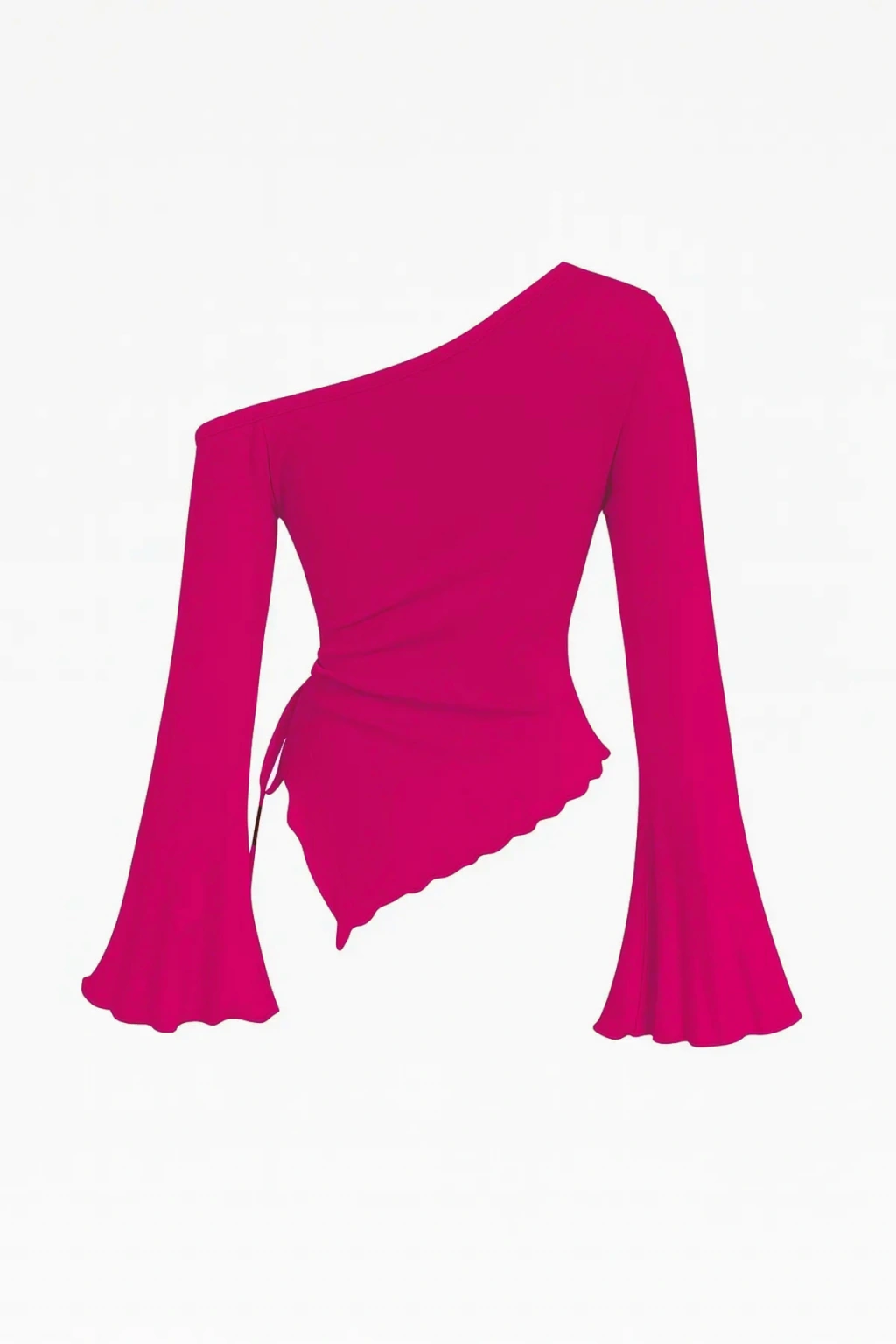 Kadın Fuşya Uzun İspanyol Kollu Asimetirik Yaka Yandan Bağlamalı Drapeli Bluz