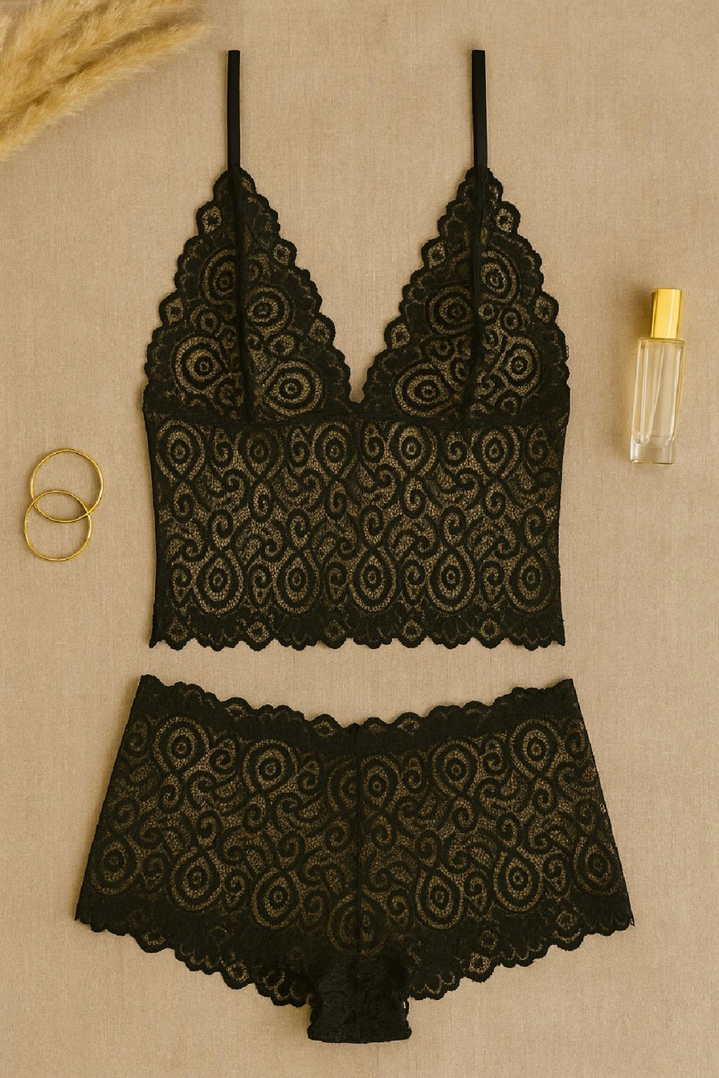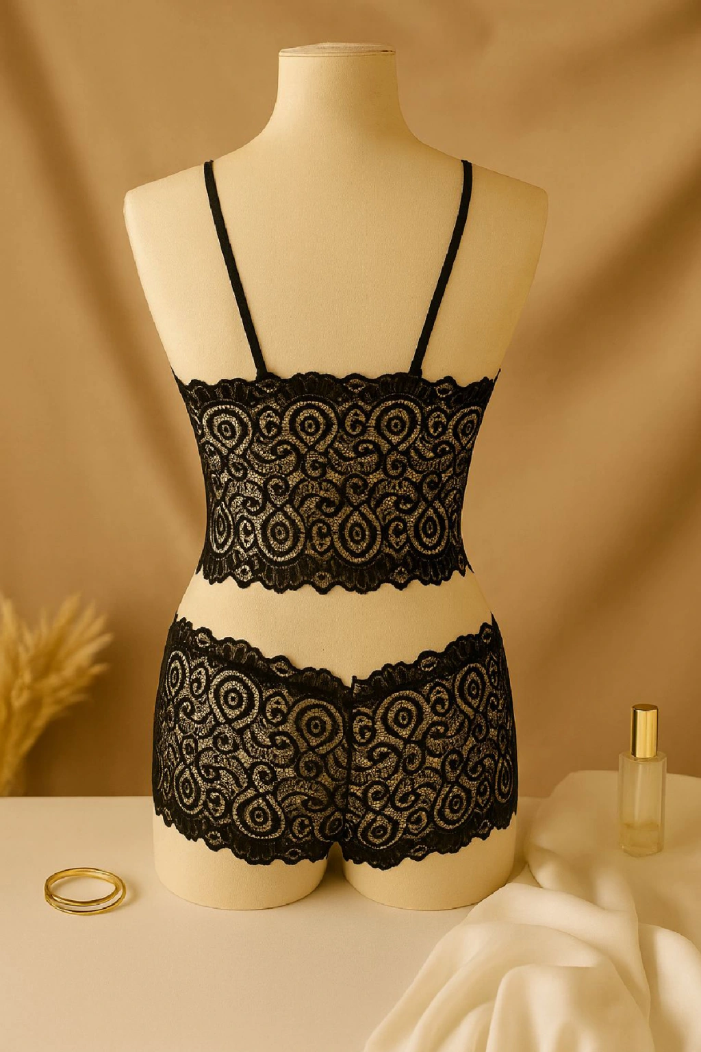 Kadın Siyah Dantel Bralet Şort Takımı – Şık, Zarif Ve Feminen İç Giyim