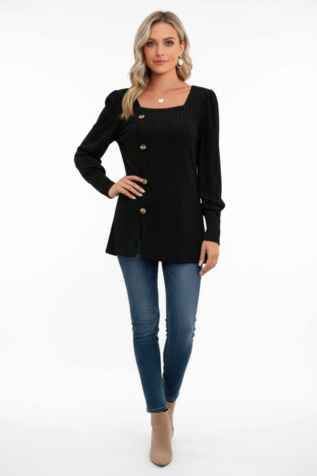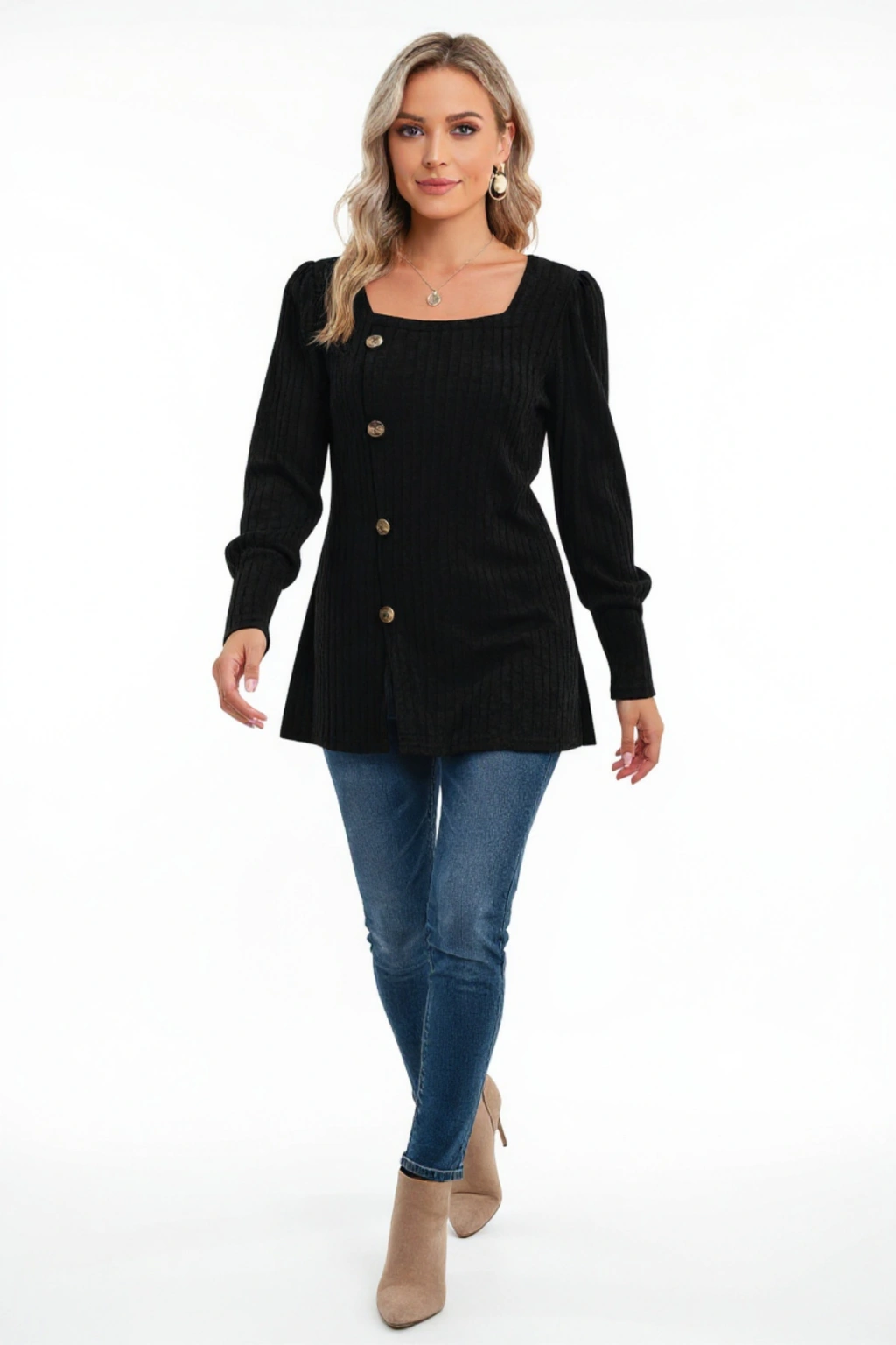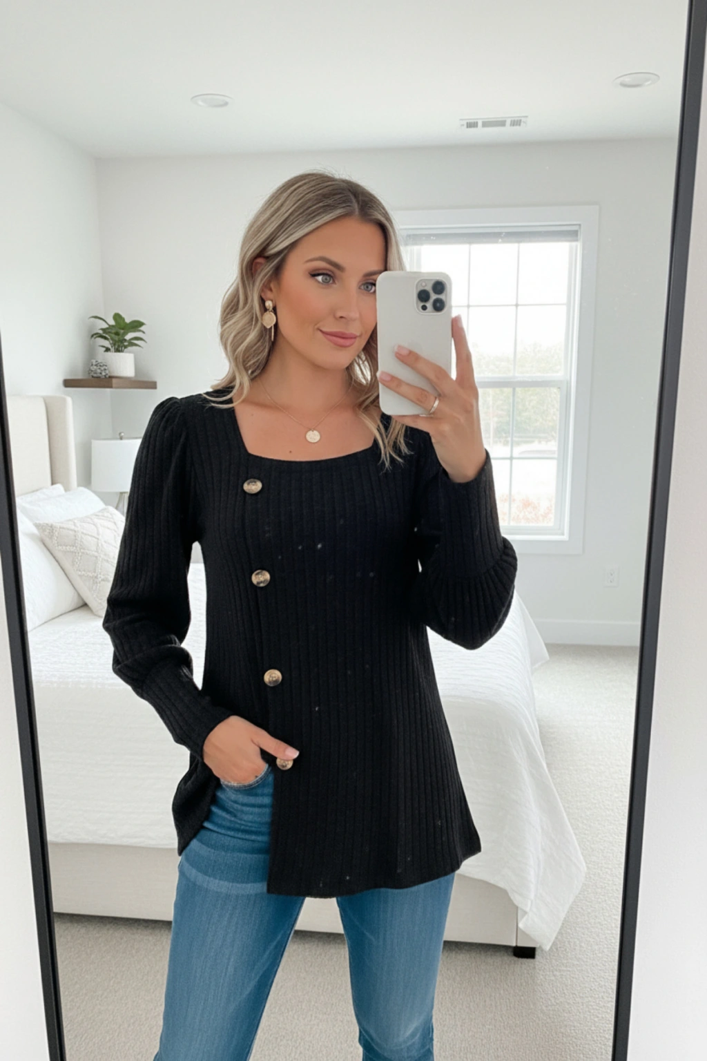 Kadın Uzun Kollu Düğmeli Mevsimlik Bluz – Yumuşak Dokulu, Esnek Ve Sıcak Tutan Kumaş