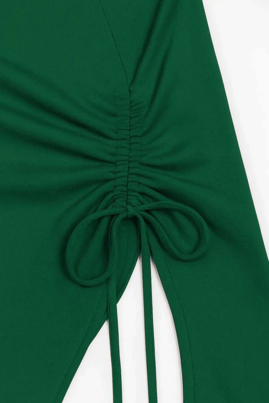 Kadın Yeşil Uzun İspanyol Kollu Asimetirik Yaka Yandan Bağlamalı Drapeli Bluz