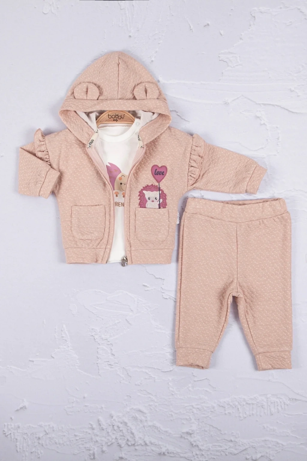 Kirpi Nakışlı % 100 Pamuk 3'lü Kız Bebek Takım
