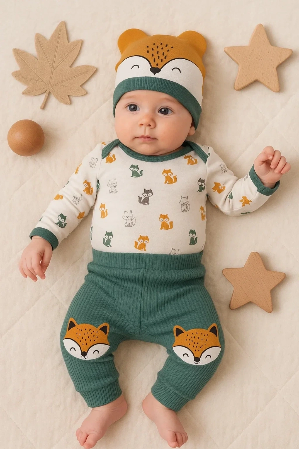 Little Fox Desenli 3'lü % 100 Pamuklu Erkek Takım