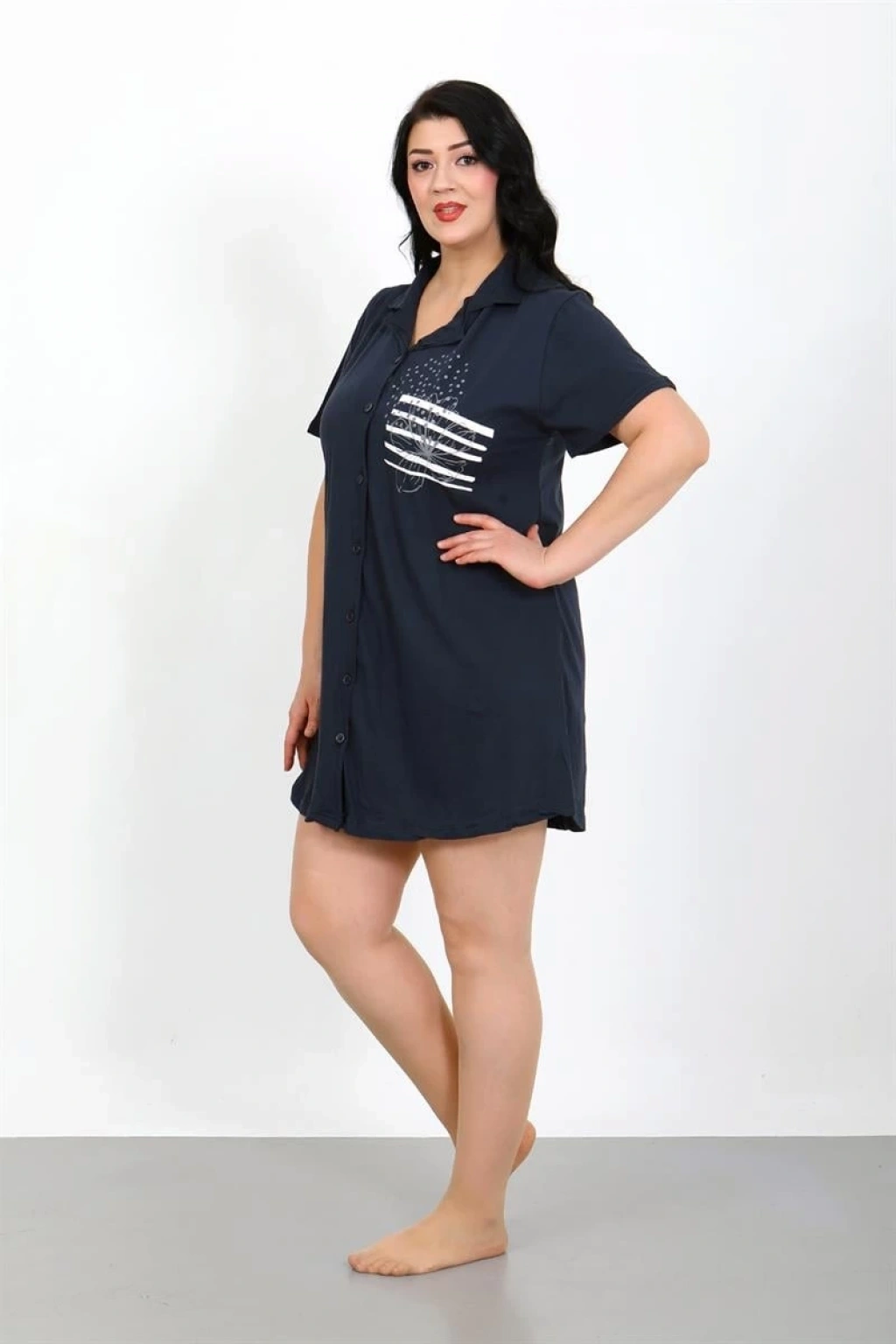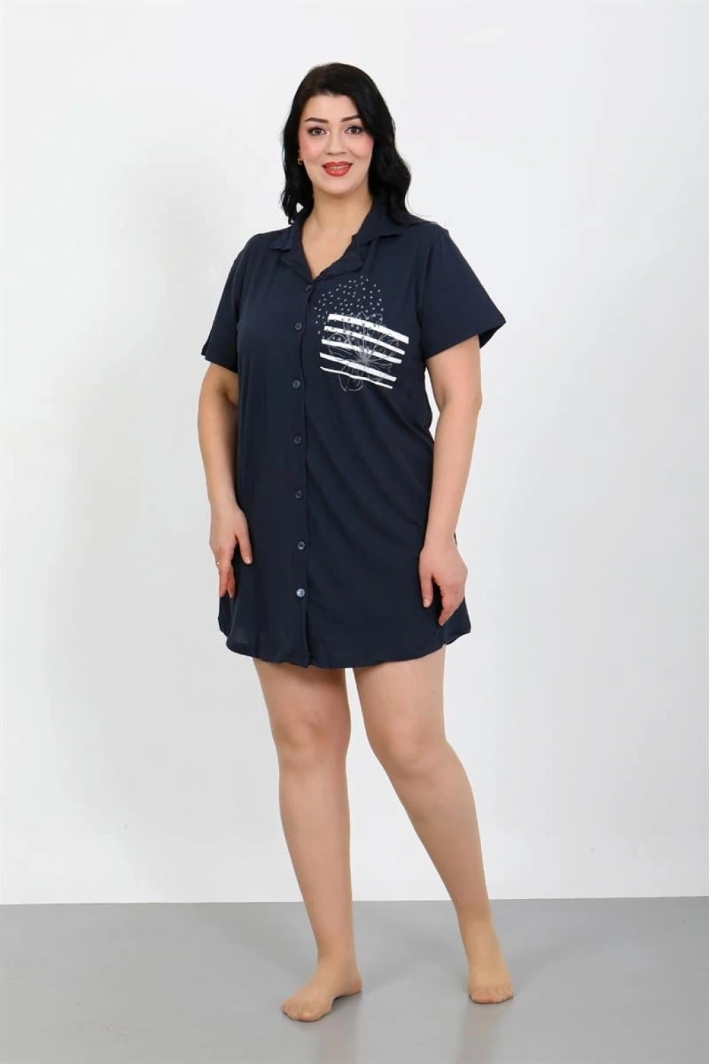 Çamaşır Kenti'nin Büyük Beden Penye Düğmeli Lacivert Tunik Geceliği ile her gece kendinizi özel hissedin!
