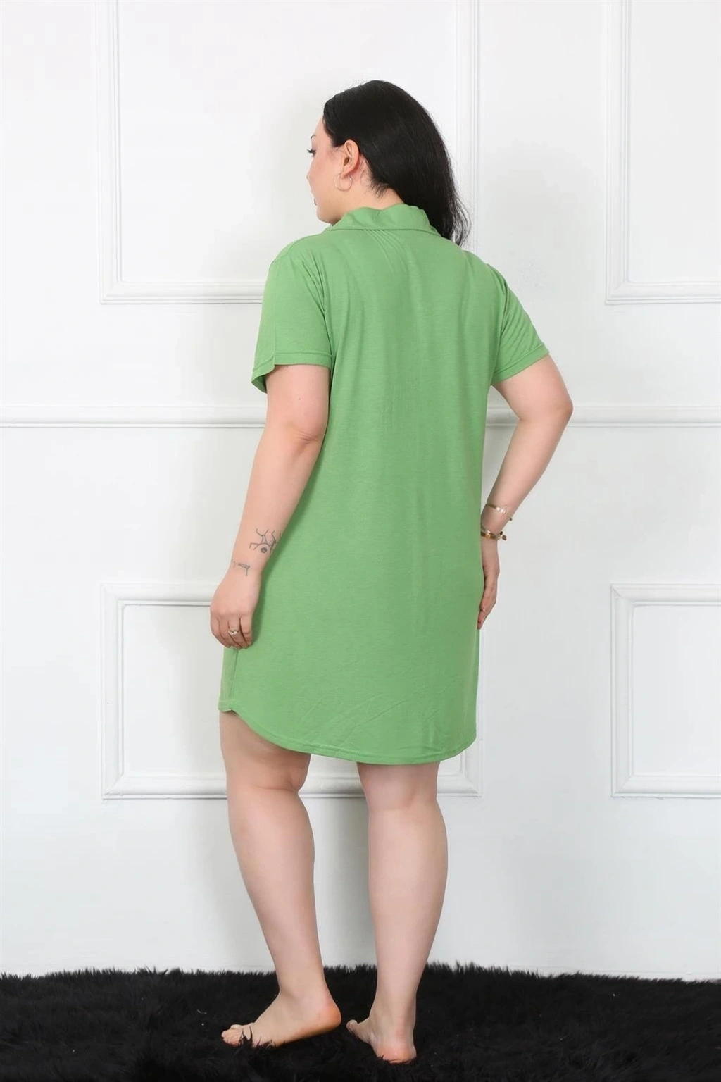 Çamaşır Kenti'nin şıklığı ve konforu bir araya getiren Büyük Beden Penye Düğmeli Yeşil Tunik Gecelik, rahat bir gece geçirmek isteyen kadınların favorisi olacak.