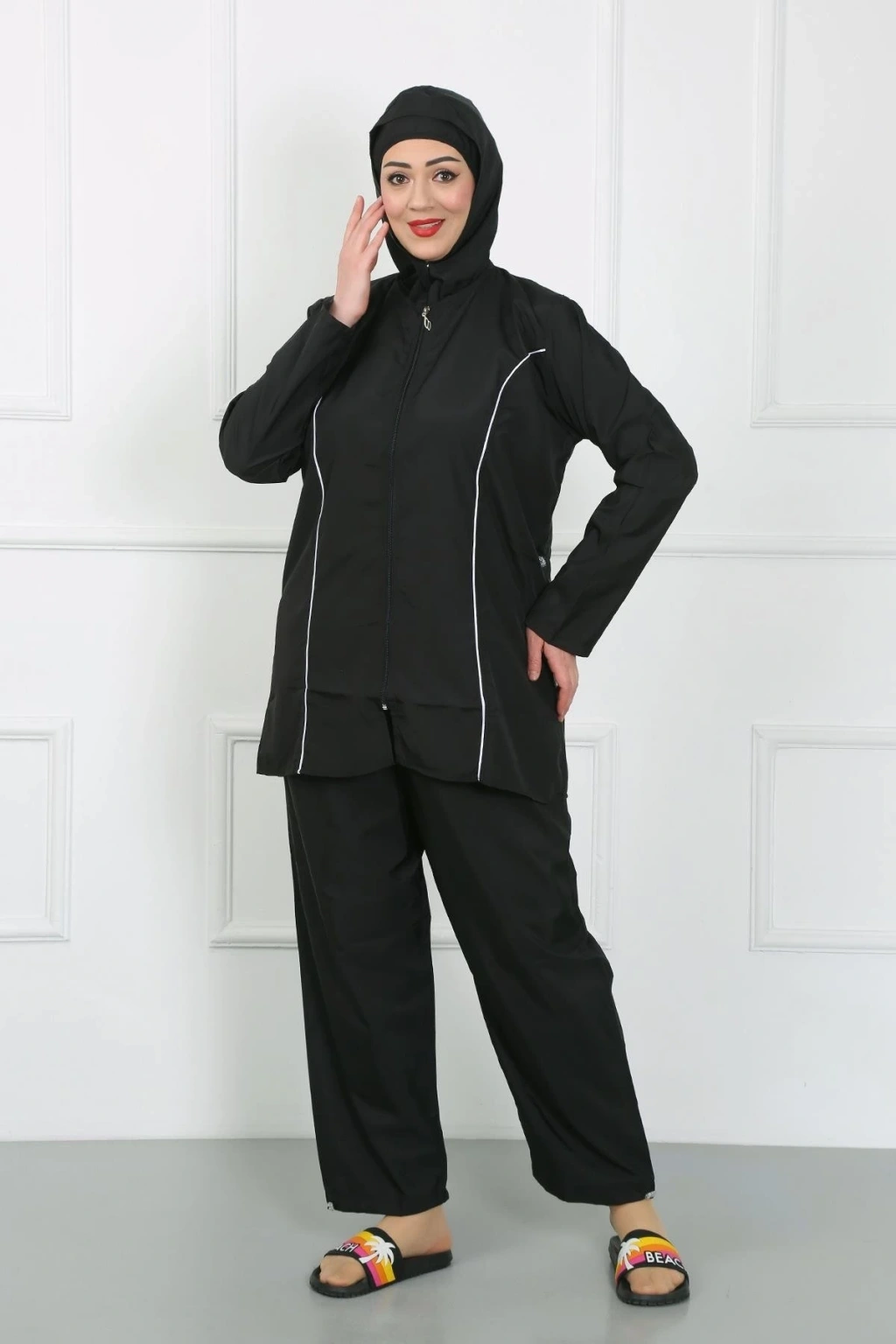 Büyük Beden Tesettür Büyük Mayo Siyah, şıklık ve rahatlığı bir arada sunar. Çamaşır Kenti'nin özel tasarımı olan bu mayo, plajda tarzını konuşturmak isteyenler için ideal bir seçenektir.