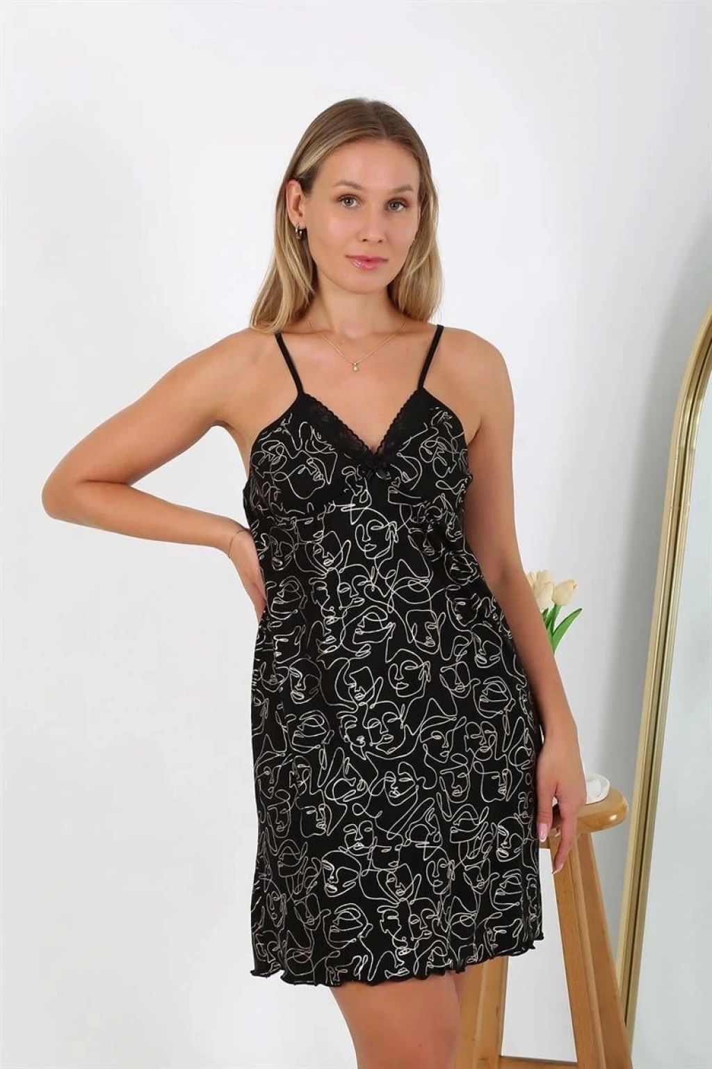 Gecelik koleksiyonunun vazgeçilmezi olmaya aday bu ürün, yüksek kalitesi ve şık tasarımıyla gardırobunuzun favori parçalarından biri olacak. Kendinizi özel ve rahat hissetmek istediğiniz her an bu geceliği tercih edebilirsiniz.