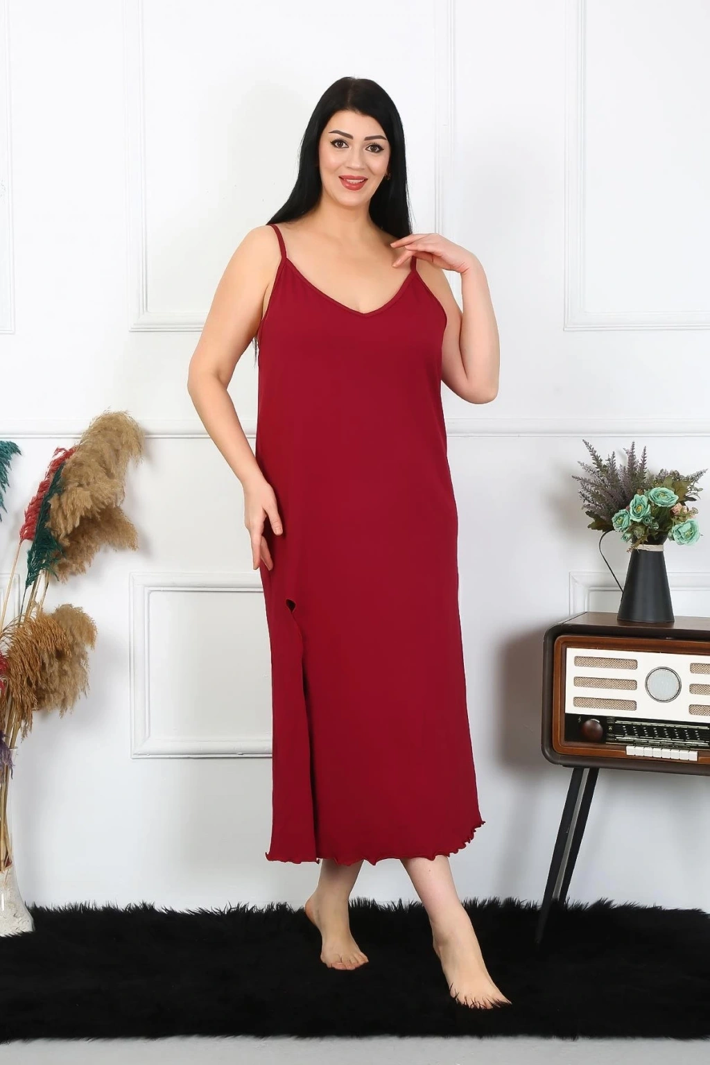 Çamaşır Kenti Kadın Büyük Beden İp Askılı Pamuklu Bordo Uzun Gecelik, rahatlığı ve şıklığı bir arada sunar.