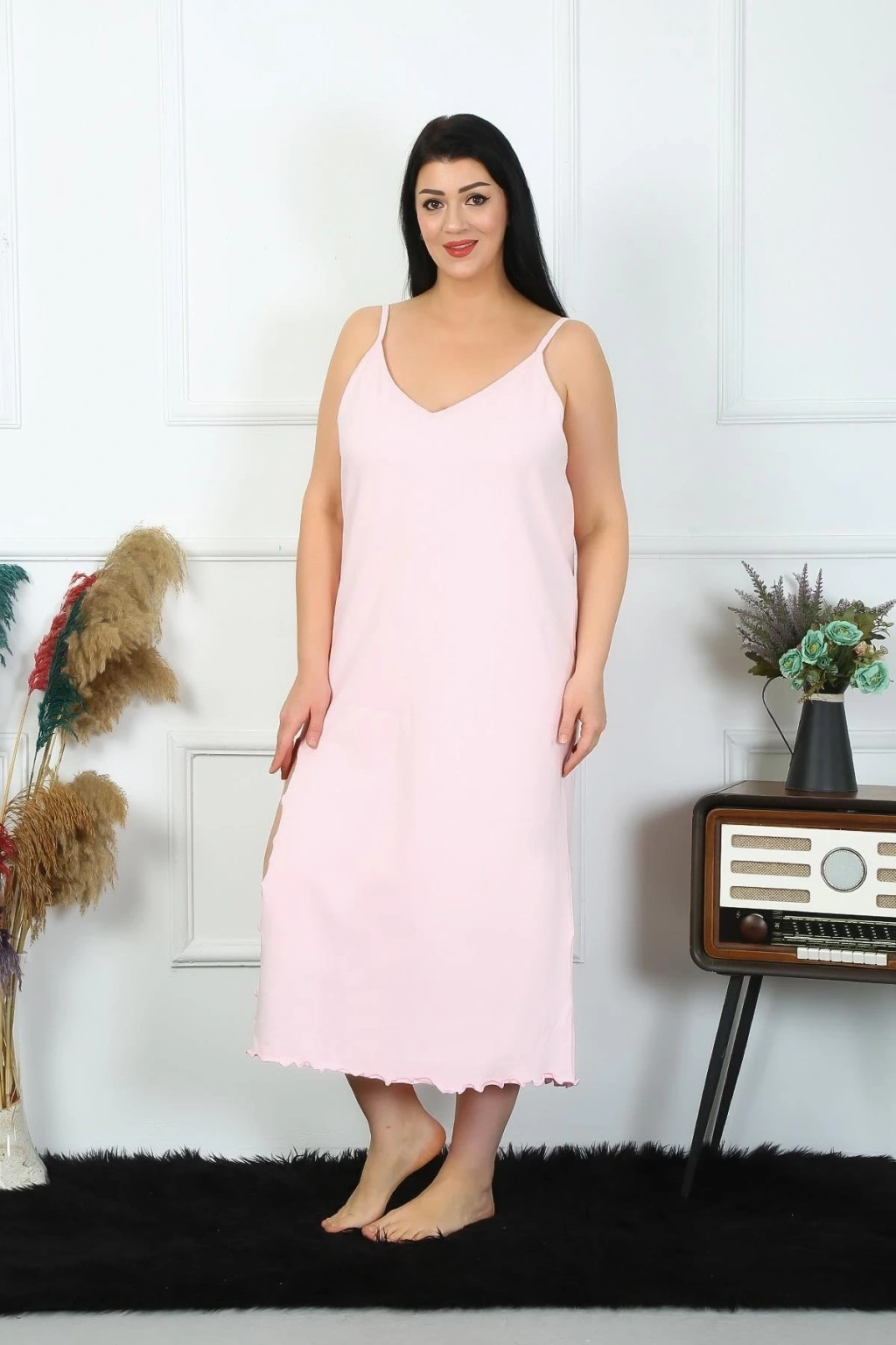 Çamaşır Kenti Kadın Büyük Beden İp Askılı Pamuklu Pembe Uzun Gecelik, rahatlığı ve şıklığı bir arada sunar.