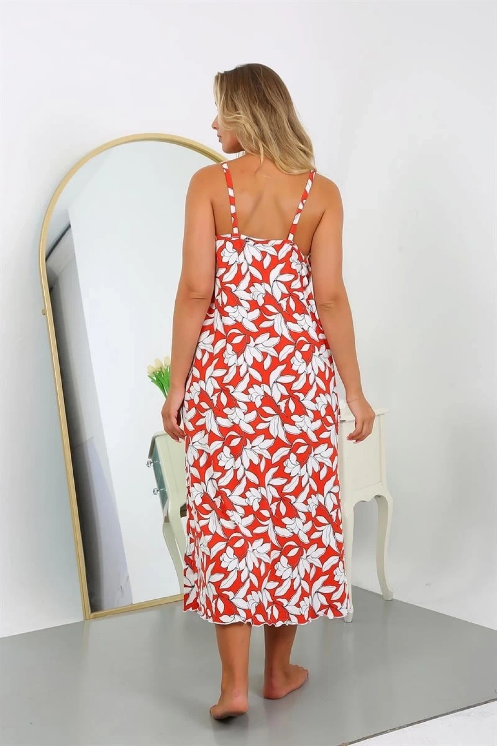 Kadın Pamuklu İp Askılı Büyük Beden Gecelik