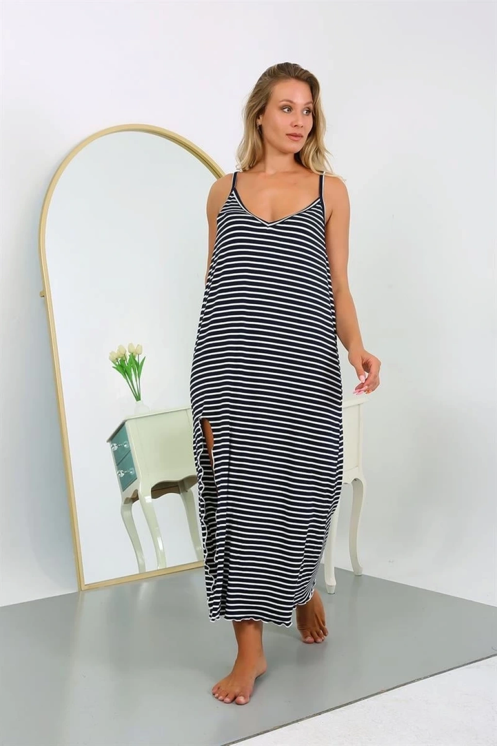 Kadın Pamuklu İp Askılı Büyük Beden Gecelik