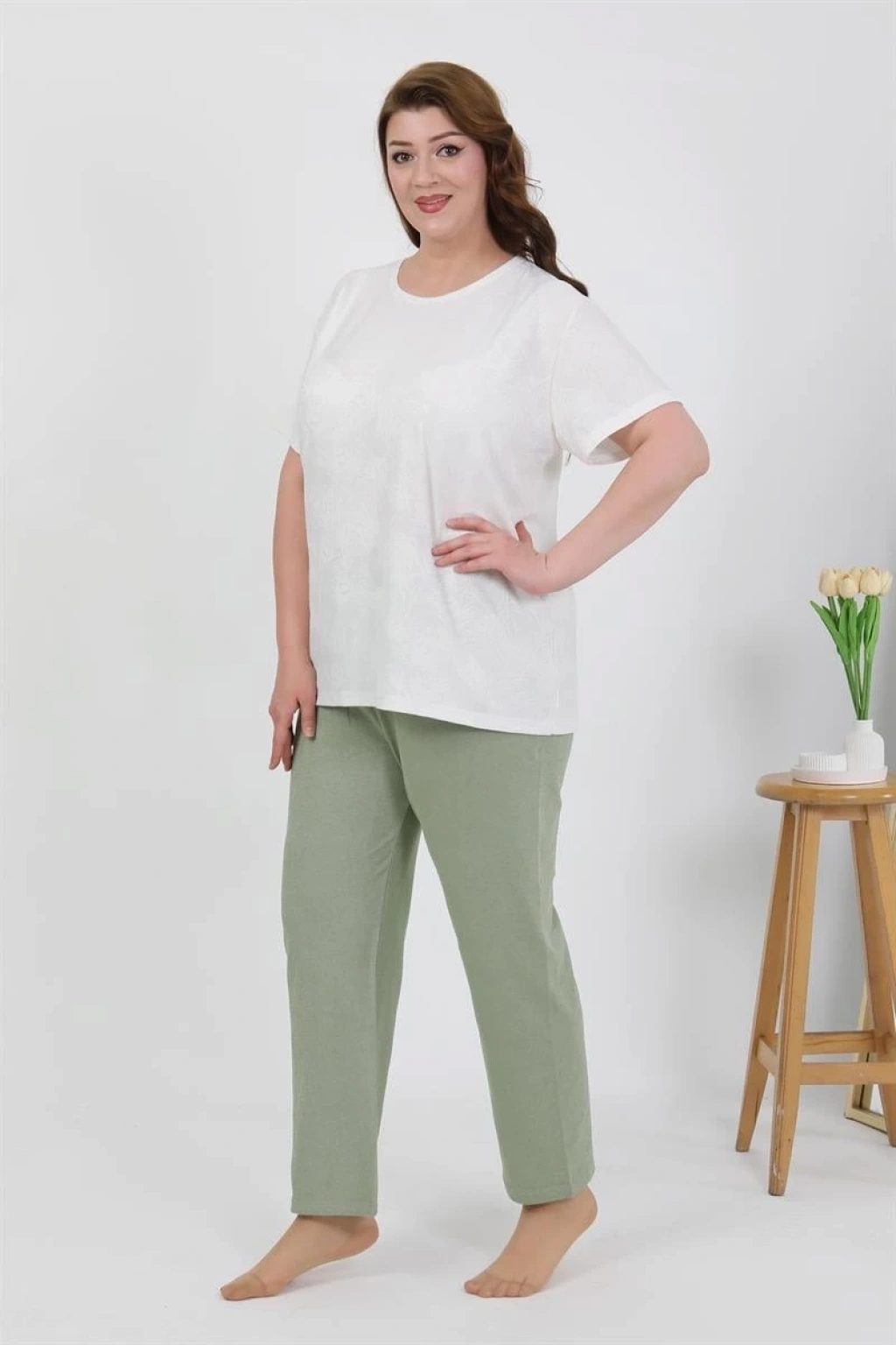 Eğer şıklığı ve rahatlığı bir arada arıyorsanız Kadın Büyük Beden Kısa Kol Penye Pijama Takımı Beyaz tam size göre!
