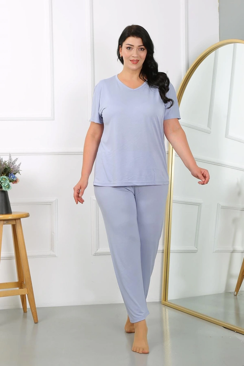 Çamaşır Kenti markasının Kadın Büyük Beden Kısa Kol Penye Pijama Takımı Lilarenk seçeneğiyle şıklığı ve rahatlığı bir arada sunuyor. Bu özel pijama takımı ile gecelerinizde hem şık hem de konforlu hissedeceksiniz.