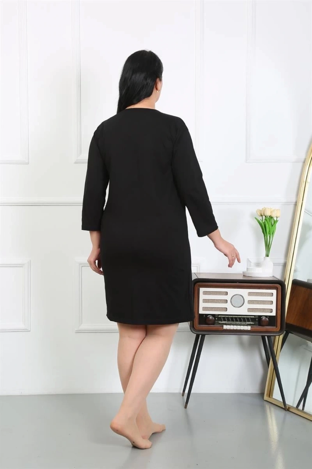 Moda Kadın Büyük Beden Penye Gecelik Ev Elbisesi Siyah