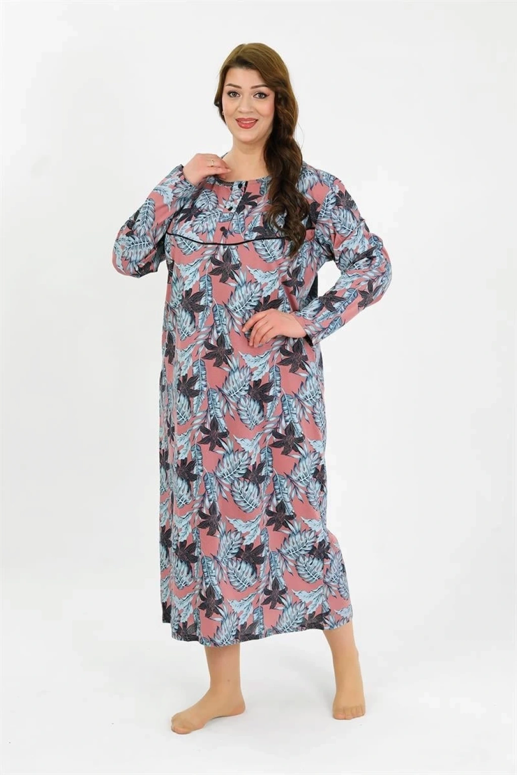 Kadın Büyük Beden Uzun Kol Somon Anne Gecelik, şık detayları ve kullanışlı tasarımıyla vazgeçilmez bir parça olmaya aday!