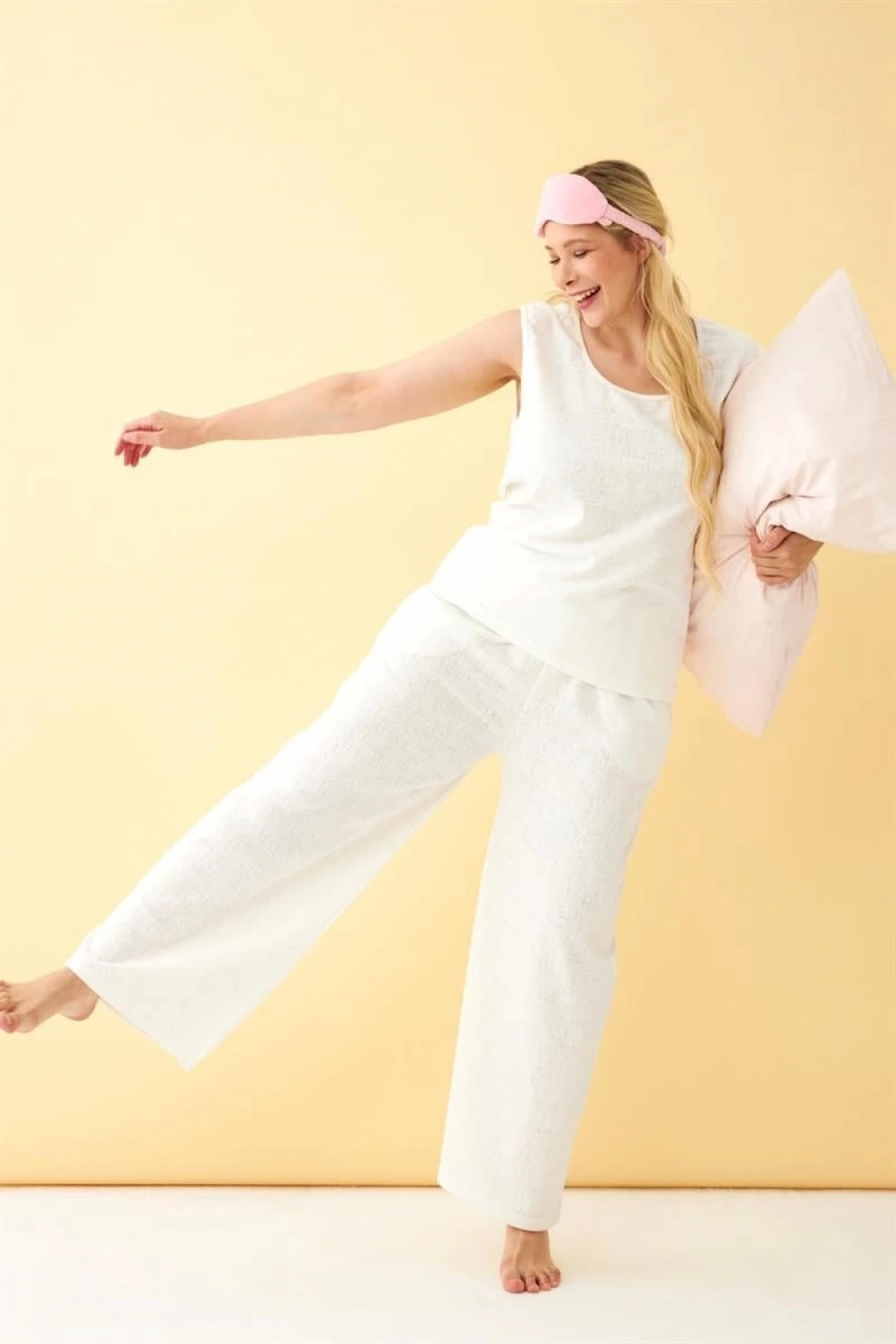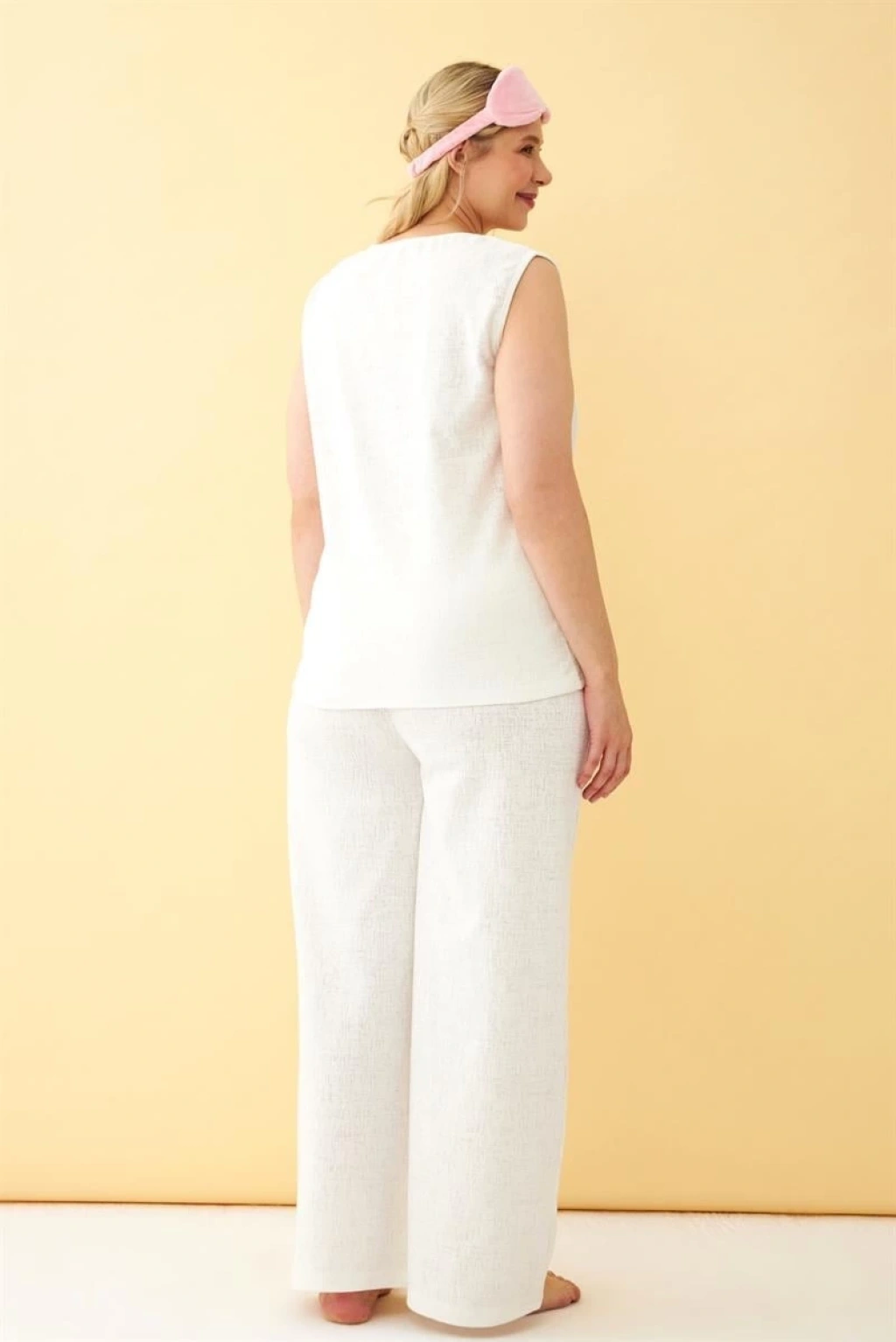 Çamaşır Kenti Kadın Ekru Keten Jakarlı Büyük Beden Alt Üst Takım ile tarzınıza tarz katın! ?