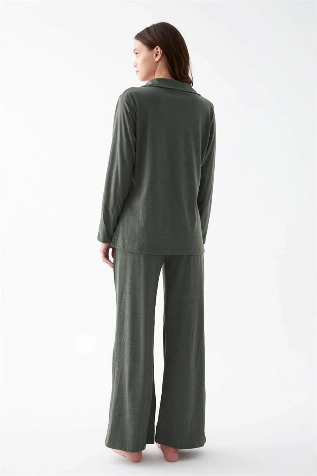Çamaşır Kenti Kadın Haki Düğmeli Pamuklu Pijama Takımı ile şıklığı ve konforu bir arada yaşayın!