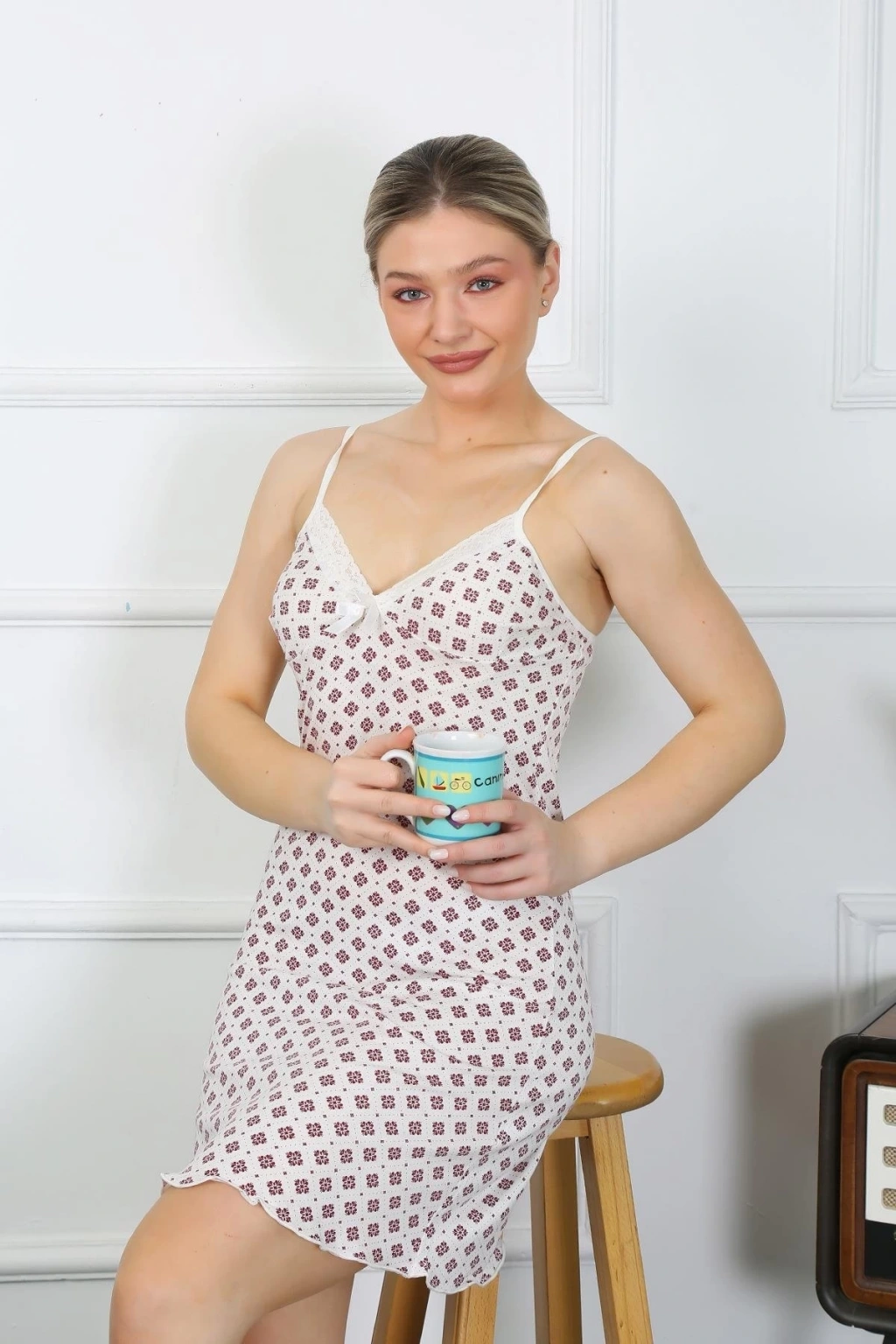 Çamaşır Kenti markasının şıklığı ve rahatlığı bir araya getiren Kadın İp Askılı Penye Kısa Gecelik 11307, gecelerinize zarafet katacak.