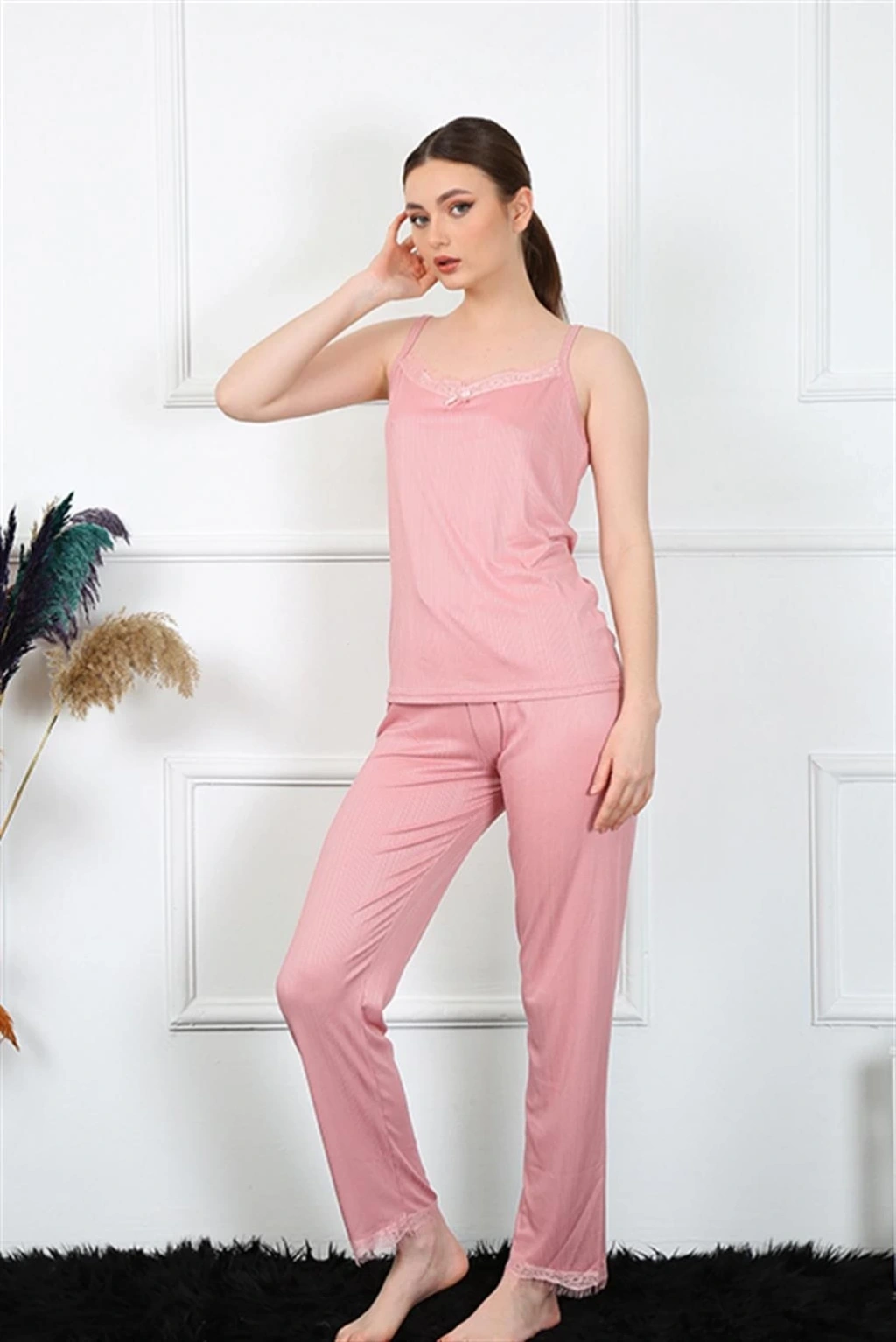 Çamaşır Kenti markasının tasarladığı Kadın İp Askılı Somon Pijama Takımı, konforu ve şıklığı bir arada sunar.