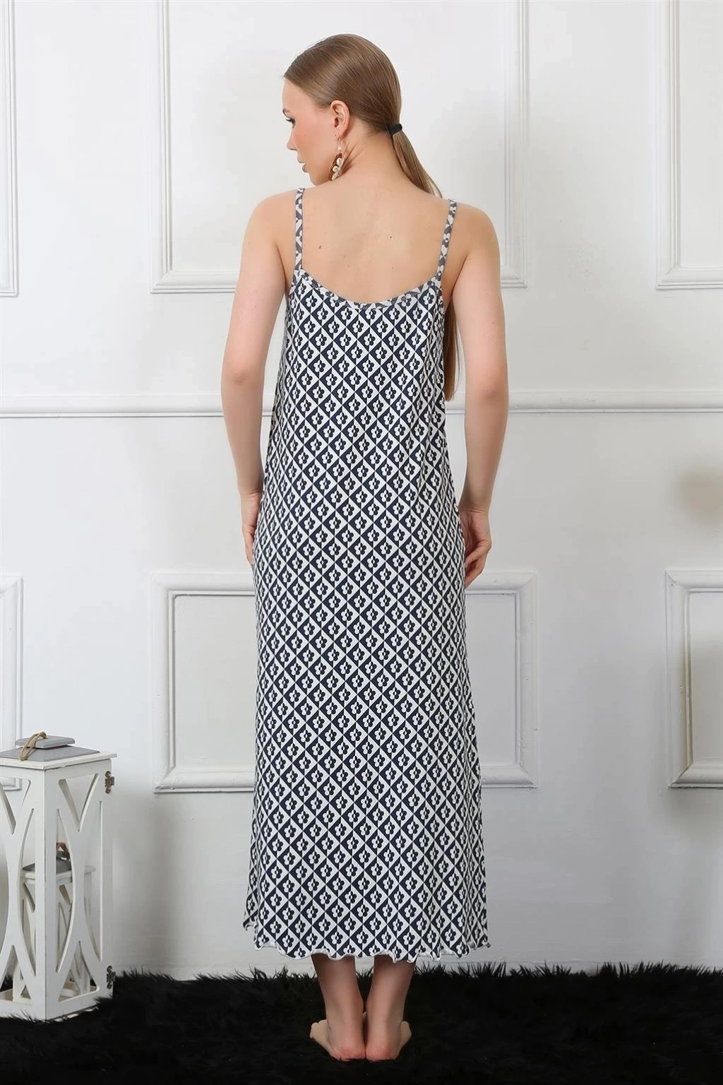 Çamaşır Kenti'nin şık tasarımı ve rahat kesimi ile öne çıkan Kadın İp Askılı Uzun Gecelik Lacivert, hem şıklığı hem de konforu bir arada sunar.