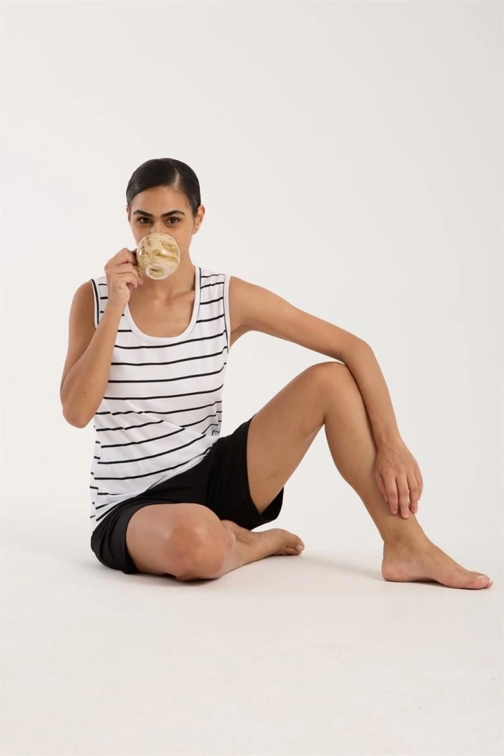 Çamaşır Kenti'nin kaliteli ve şık tasarımıyla öne çıkan Kadın Kalın Askılı Beyaz Şortlu Pijama Takımı, rahatına düşkün kadınların favorisi olmaya aday. Penye kumaştan üretilen bu pijama takımı sayesinde hem şıklığı hem de konforu aynı anda yaşayacaksınız.