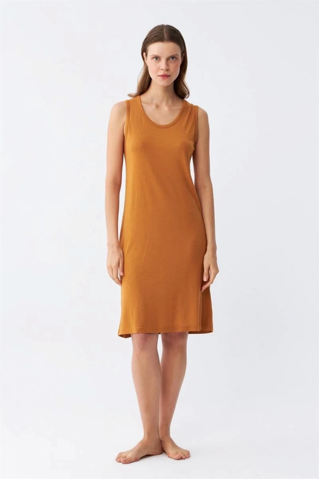 Çamaşır Kenti markasının şık ve rahat tasarımına sahip Kadın Kalın Askılı Penye Gecelik Hardal, günün yorgunluğunu üzerinizden atmanızı sağlar.