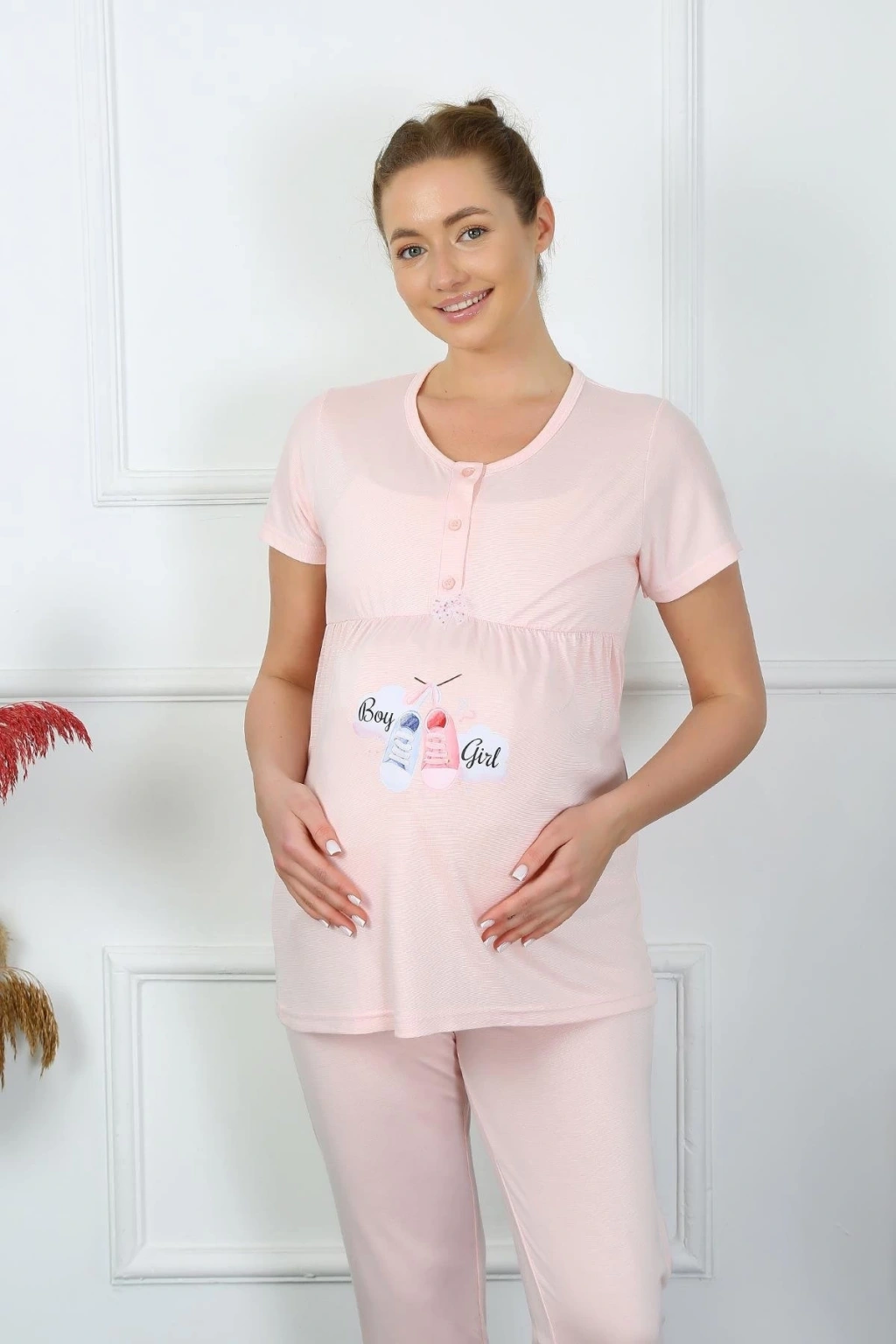 Çamaşır Kenti markasının sunduğu Kadın Kısa Kol Hamile Lohusa Pijama Takımı Pudra, şıklığı ve rahatlığı bir arada sunuyor. Hamilelik ve lohusalık dönemlerinde konforunuz için özel olarak tasarlanmıştır.