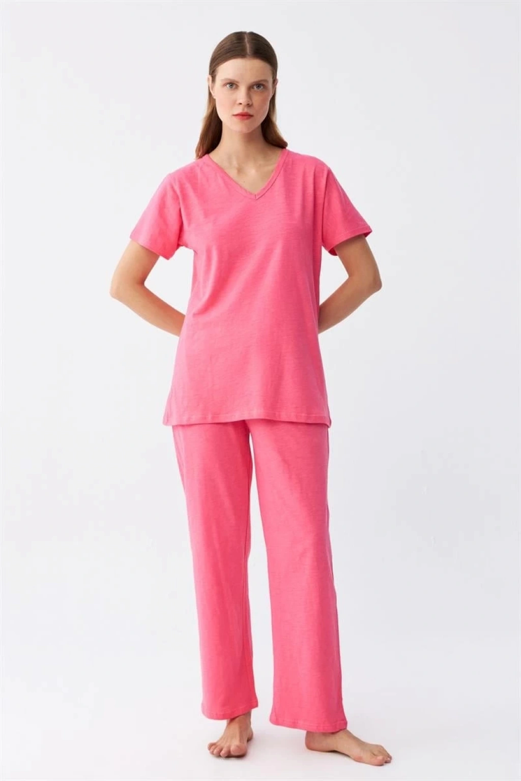 Çamaşır Kenti markasının şık ve rahat tasarıma sahip Kadın Kısa Kol Pamuk Penye Pijama Takımı ile konforun tadını çıkarın.