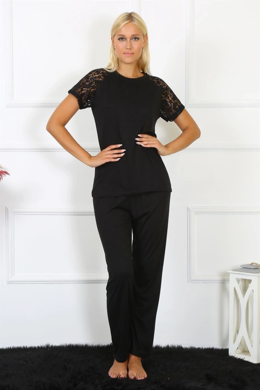Çamaşır Kenti markasıyla sunulan Kadın Kolu Dantelli Penye Pijama Takımı Siyah, konforu ve şıklığı bir arada sunar. Sağladığı rahatlıkla gece boyunca huzurlu bir uyku deneyimi yaşamanızı sağlar. İnce dantel detaylarıyla zarif bir görünüm sunan bu pijama takımı, vücudu saran penye kumaşıyla da kullanım kolaylığı sağlar.
