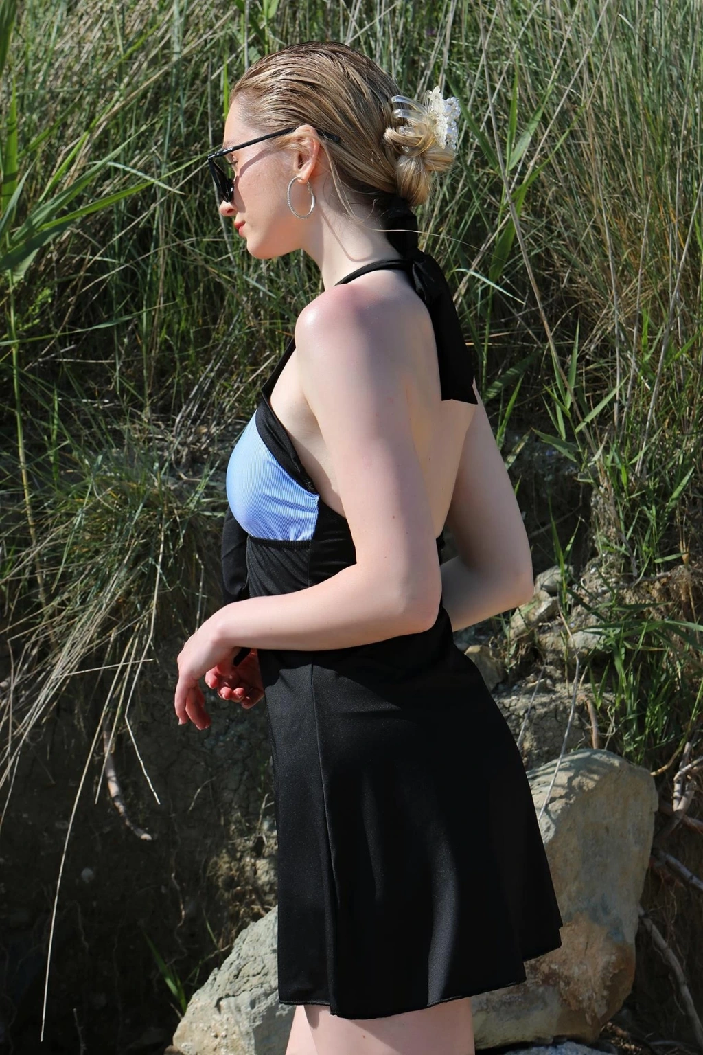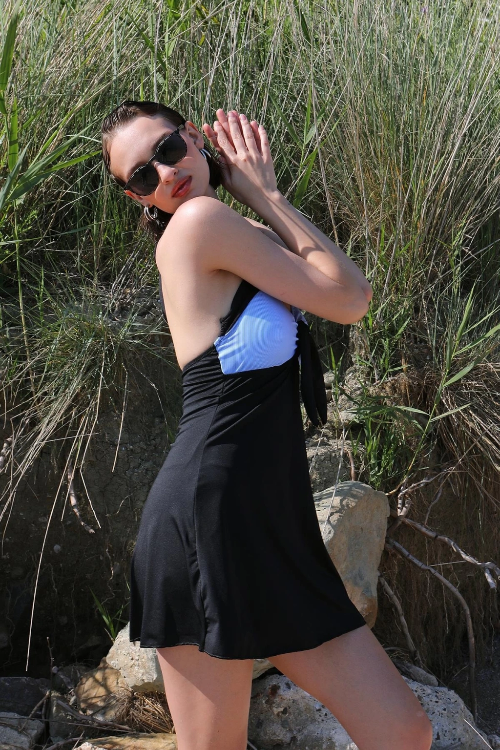 Kadın Likralı Şortlu Fiyonklu Elbise Mayo Mavi ile plaj stilinizde fark yaratmaya hazır olun!
