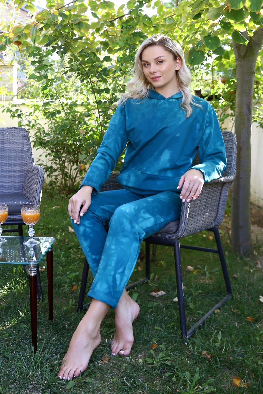 Çamaşır Kenti Kadın Pamuk Kapşonlu Cepli 3 İplik Turkuaz Eşofman Takımı, spor salonundan günlük hayata kadar her ortamda şıklığınızı ve rahatlığınızı korumanızı sağlar.