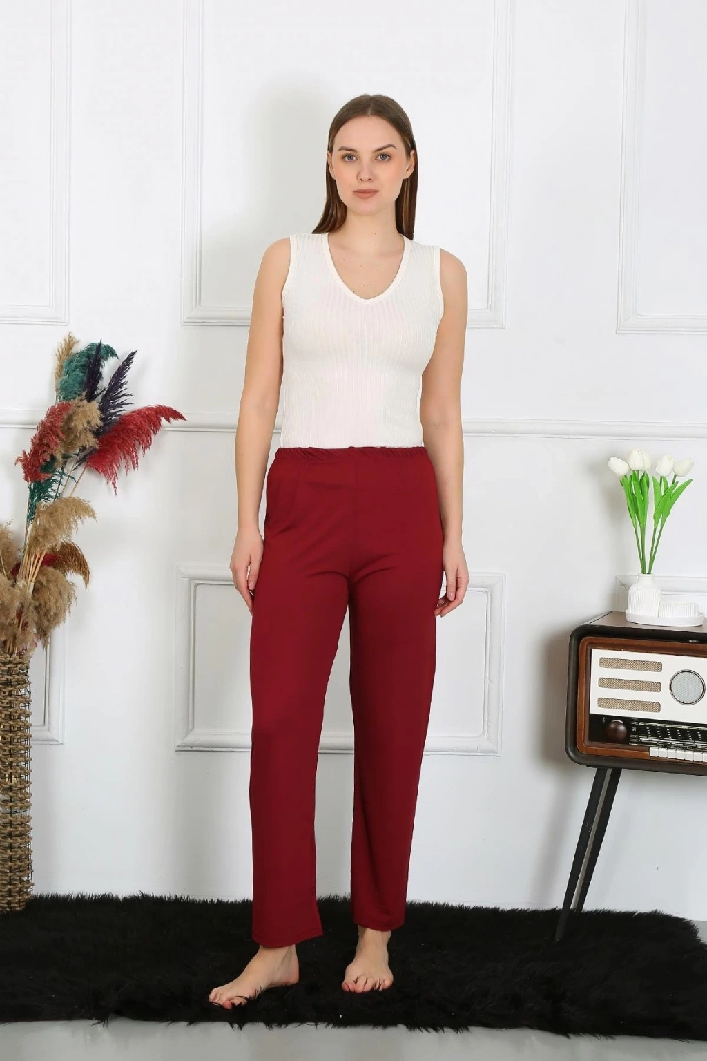 Çamaşır Kenti markasıyla sunulan Kadın Pamuk Penye Tek Alt Pijama Bordo, konfor ve şıklığı bir arada sunar.